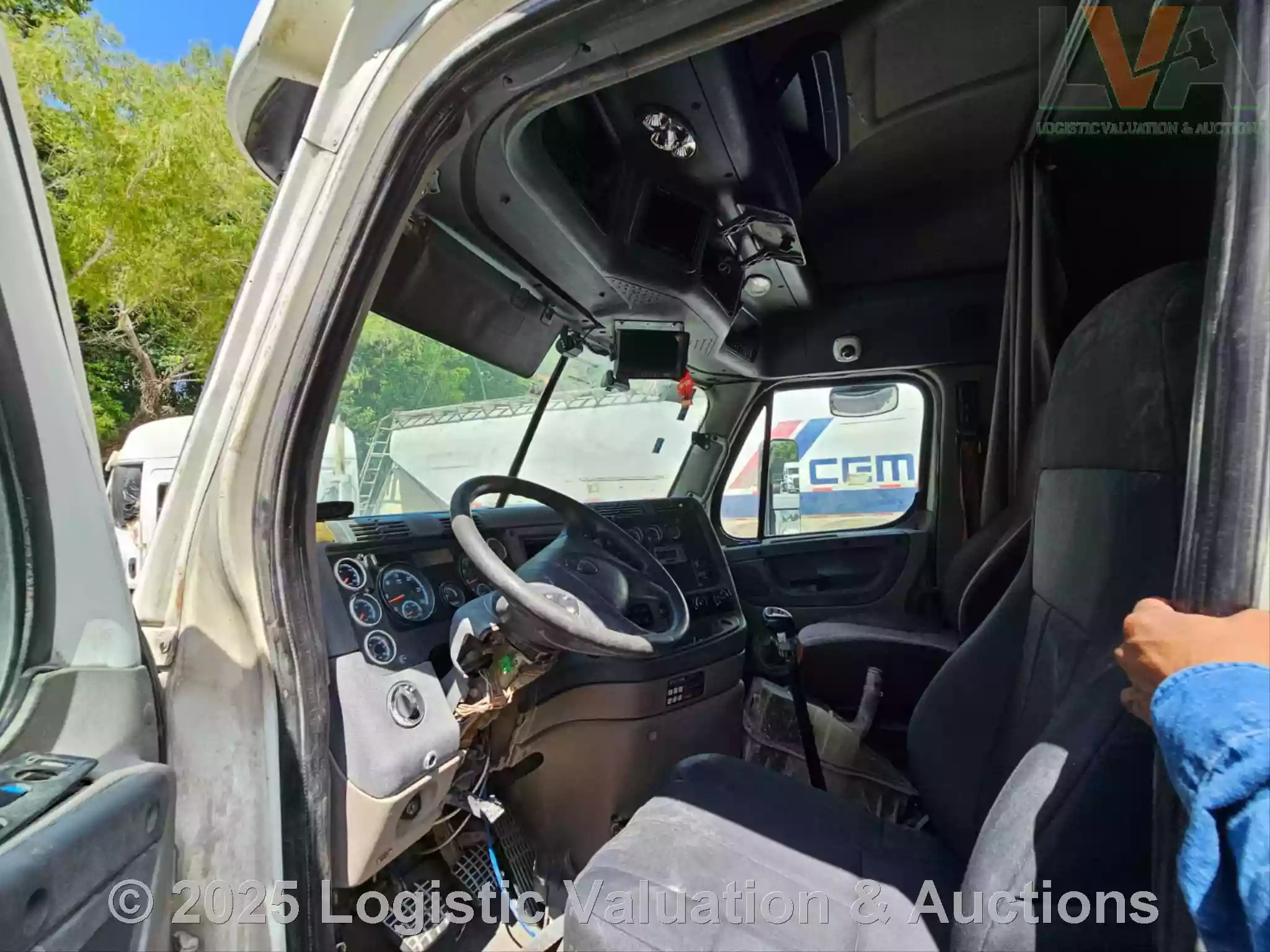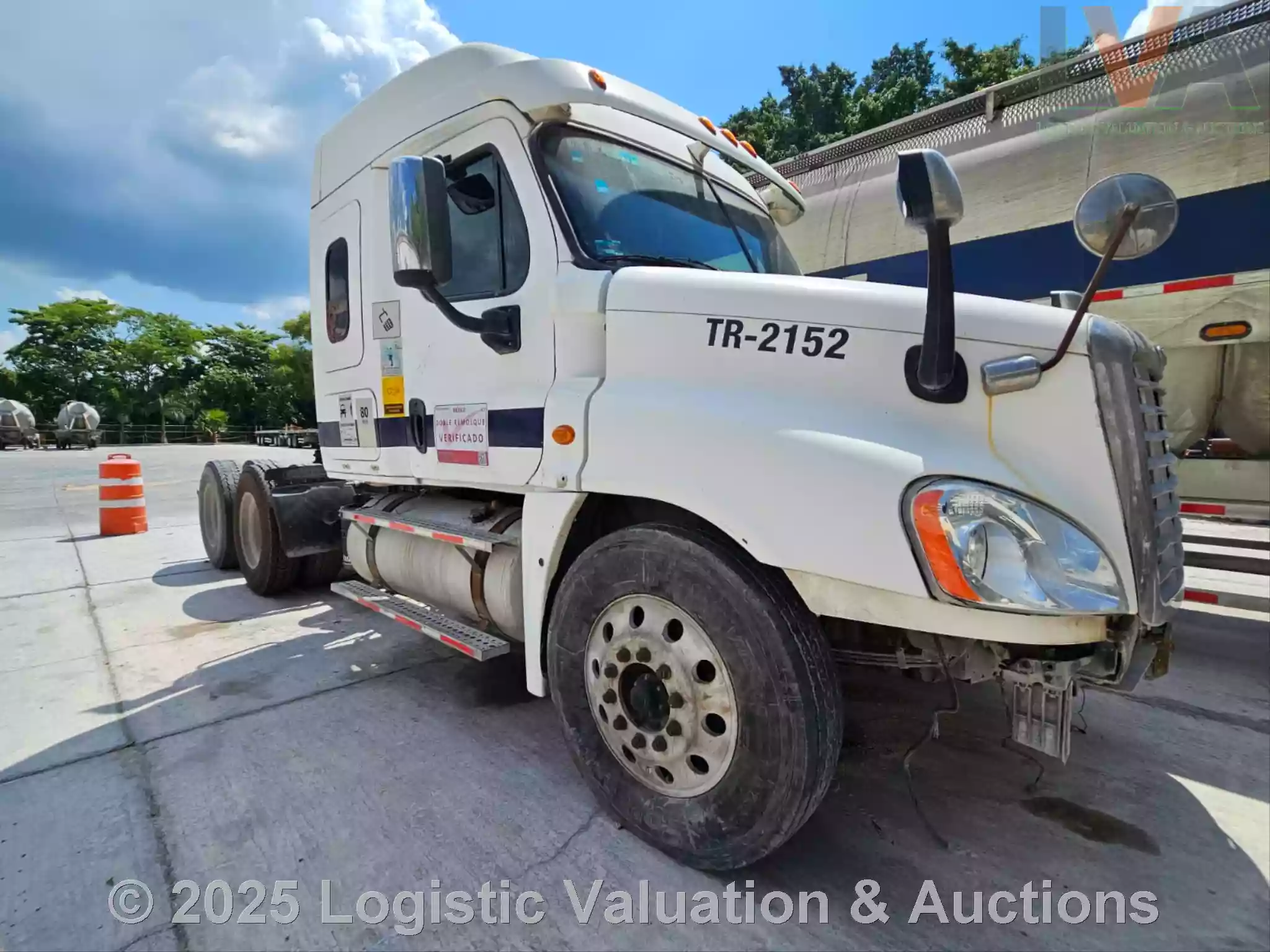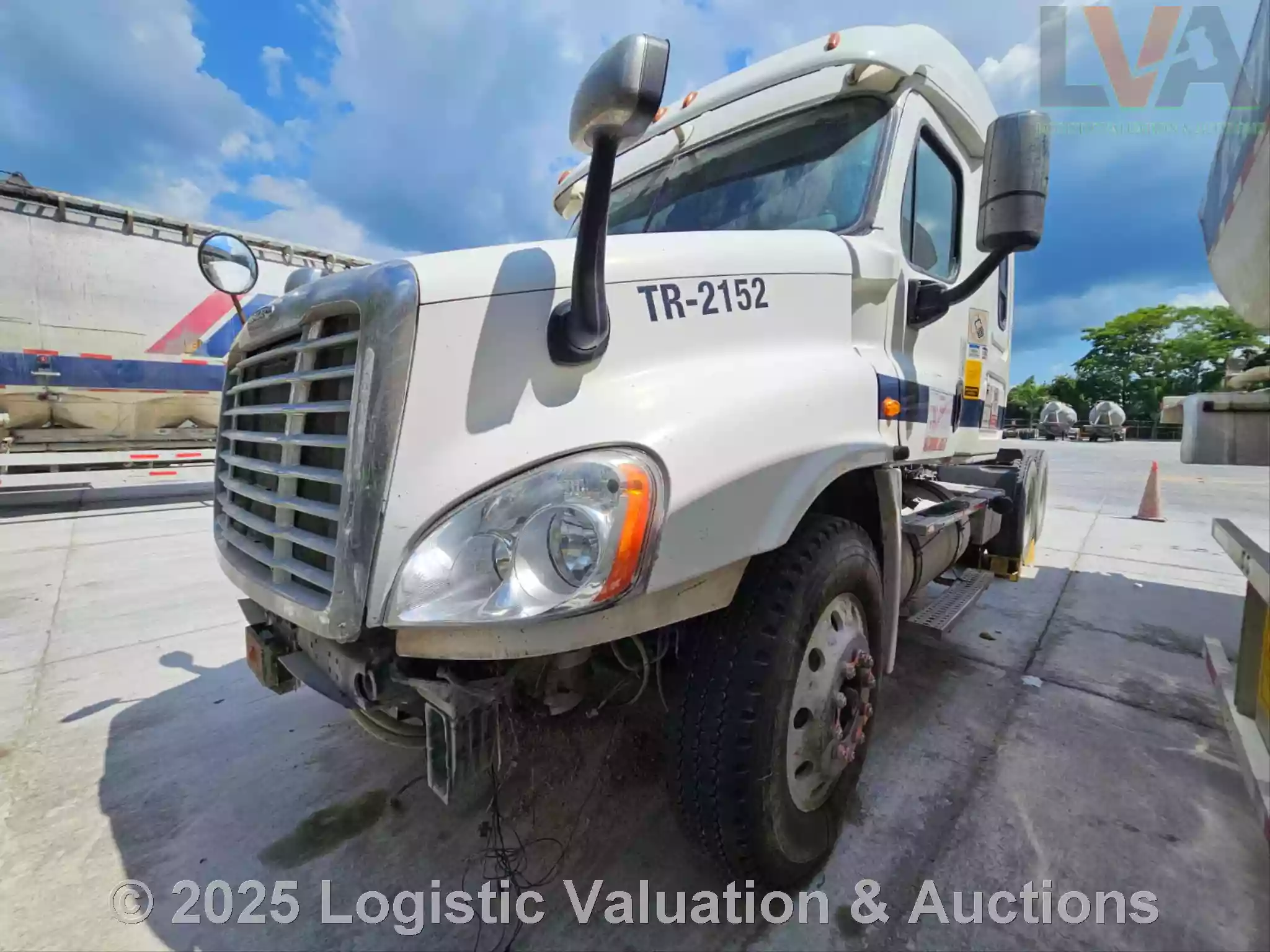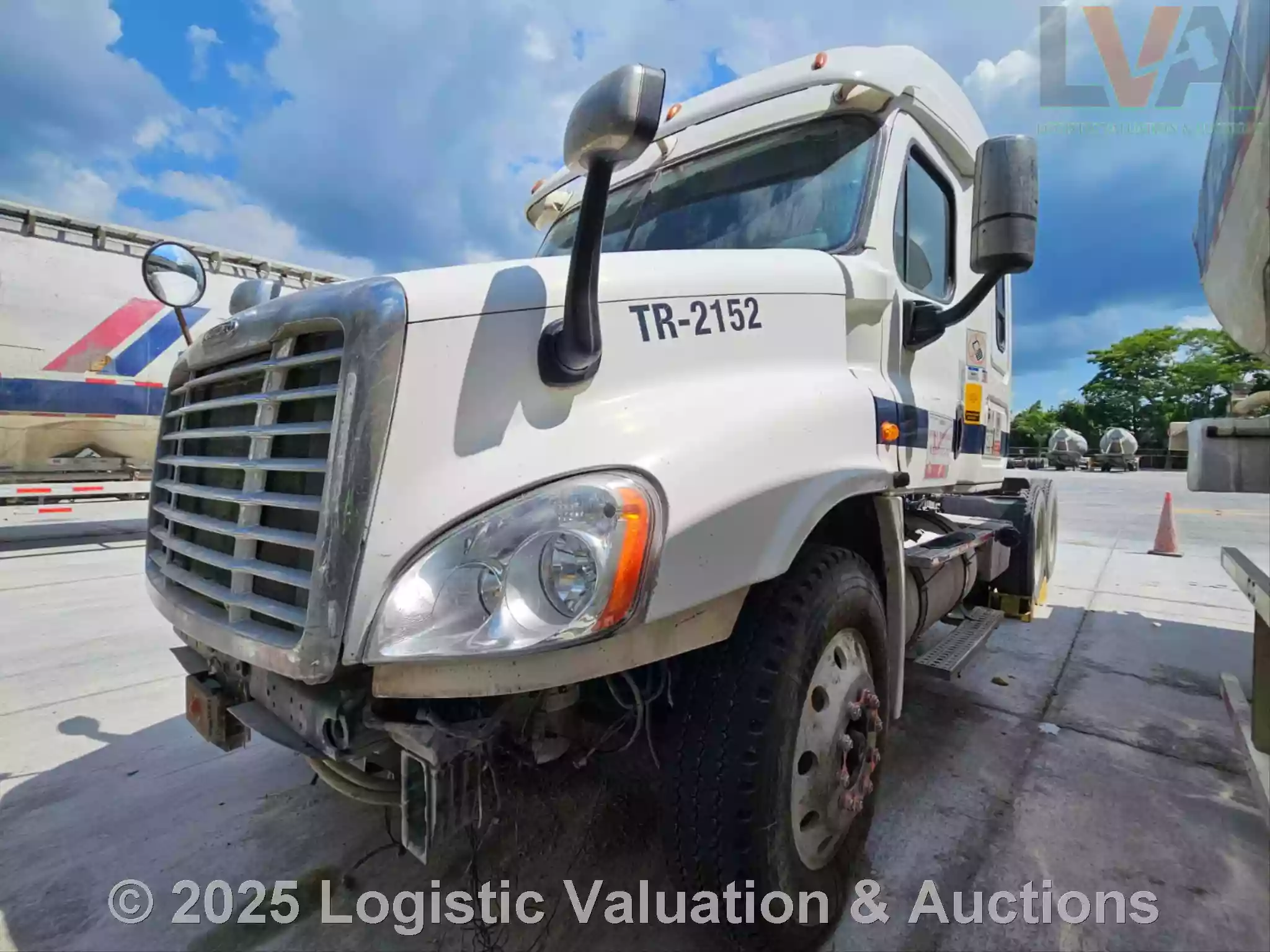 TRACTOCAMIÓN, MARCA: FREIGHTLINER, MODELO: CASCADIA 125, AÑO: 2018, SERIE: 3AKJGLDR8JDJY3806, CONDICIONES: NO OPERABLE, PRESENTA FALLAS EN EL MOTOR, PIEZAS FALTANTES DEL MOTOR, CARROCERIA EN BUEN ESTADO, NO TIENE LA FASCIA, FLECHA DEL CARDAN DESMONTADA, VENTIOLADOR DESMONTADO, CABLES DESCONECTADOS DE LA PARTE DE ABAJO DEL VOLENATE, PARABRISAS ESTRELLADO, CRISTALES DE PUERTAS NO SUBEN, ASIENTOS CON RASGADURAS, SIN BATERIAS, LLANTAS, UNAS EN REGULARES CONDICIONES Y OTRAS EN MALAS CONDICIONES, ECO: TR-2152