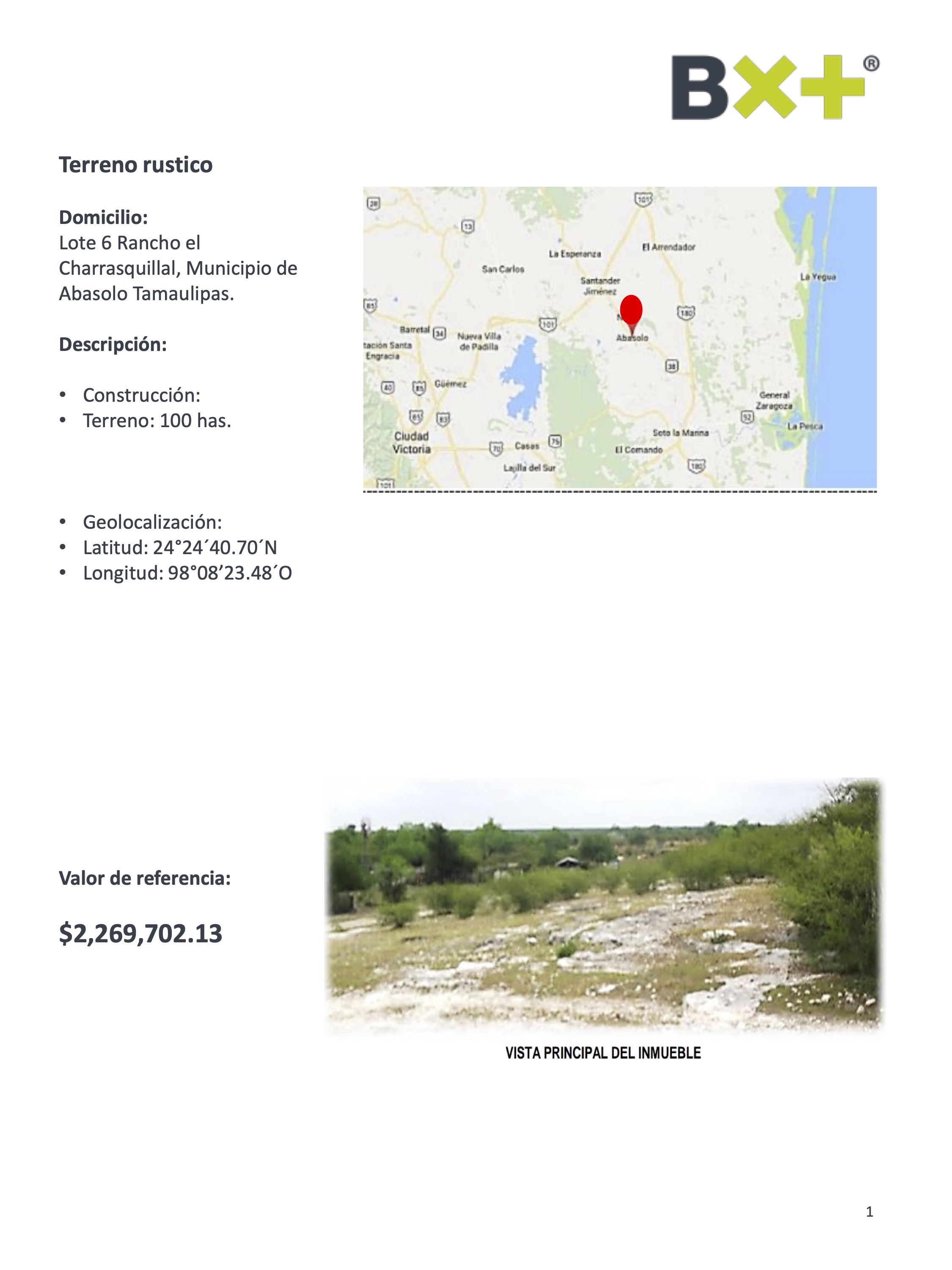 TERRENO RUSTICO, TERRENO: 100 HAS., LOTE 6 RANCHO EL CHARRASQUILLAL, MUNICIPIO DE ABASOLO TAMAULIPAS.