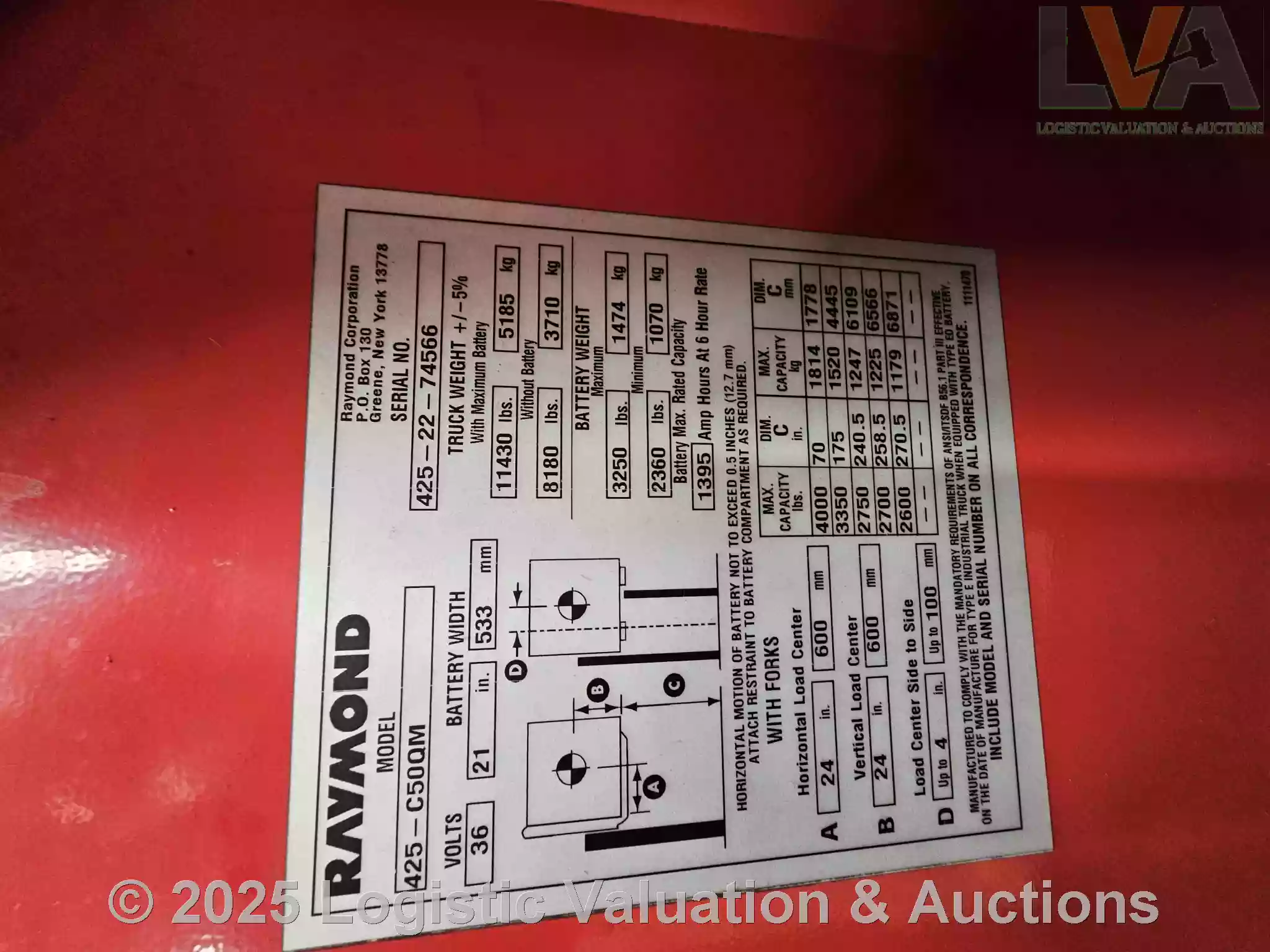 MONTACARGAS ELECTRICO, MARCA: RAYMOND, MODELO: 425-C50QM, AÑO: , SERIE: 425-22-74566, CONDICIONES: REGULARES CONDICIONES GENERALES, OPERANDO., CAP DE CARGA: 1442