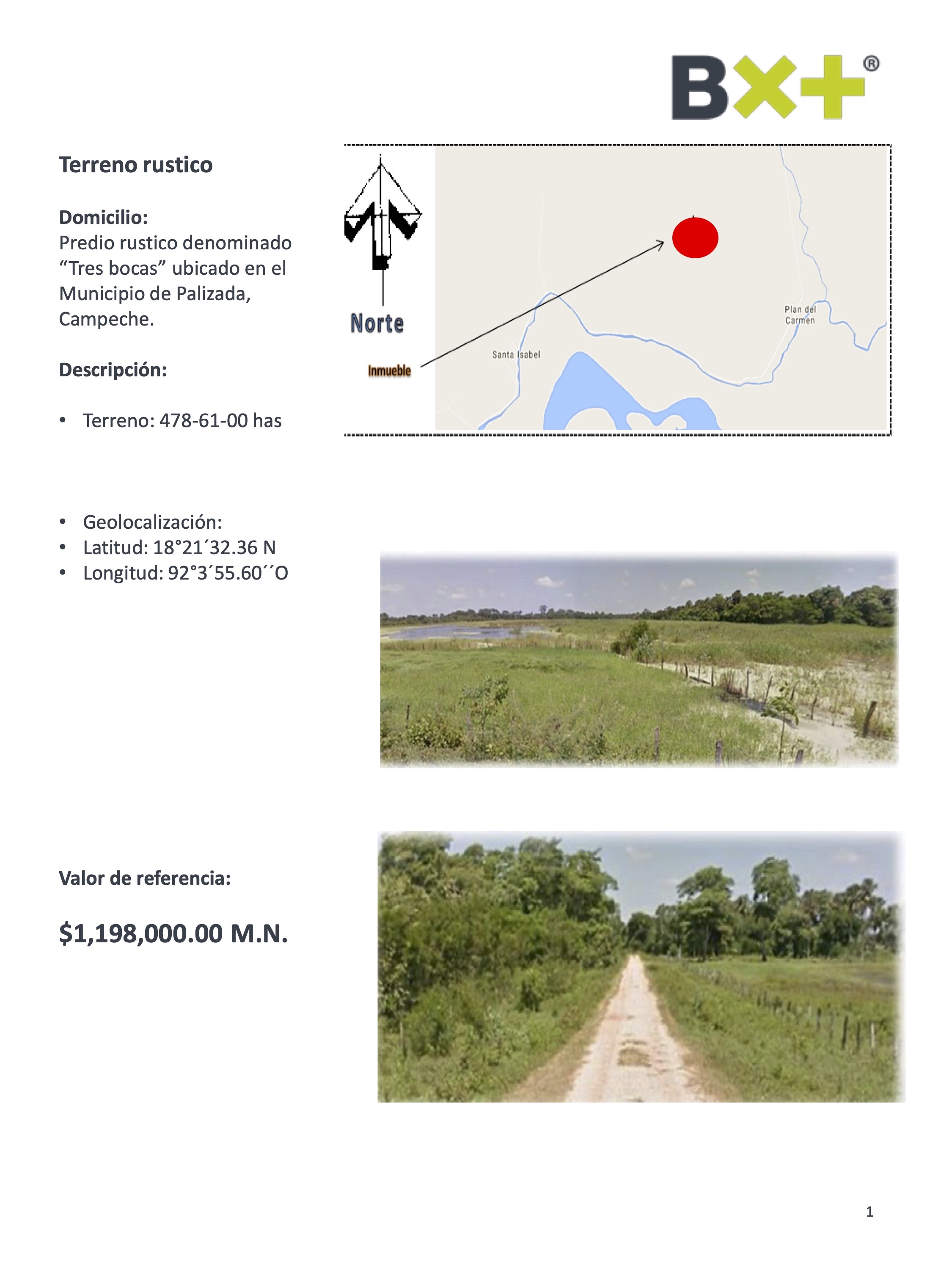 TERRENO RUSTICO, TERRENO: 478-61-00 HAS, PREDIO RUSTICO DENOMINADO "TRES BOCAS" UBICADO EN EL MUNICIPIO DE PALIZADA, CAMPECHE.