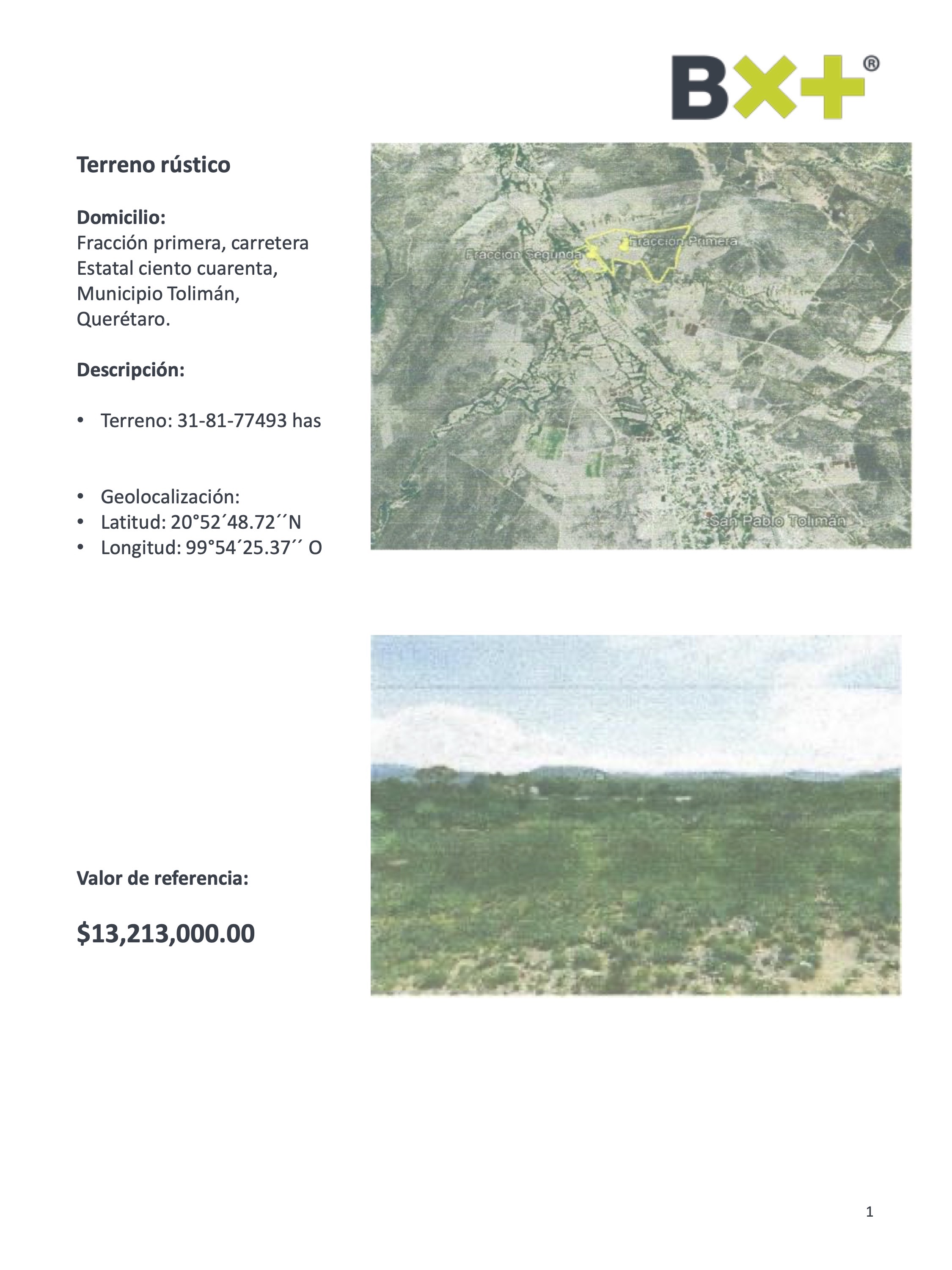TERRENO RÚSTICO, TERRENO: 31-81-77493 HAS, FRACCIÓN PRIMERA, CARRETERA ESTATAL CIENTO CUARENTA, MUNICIPIO TOLIMÁN, QUERÉTARO.