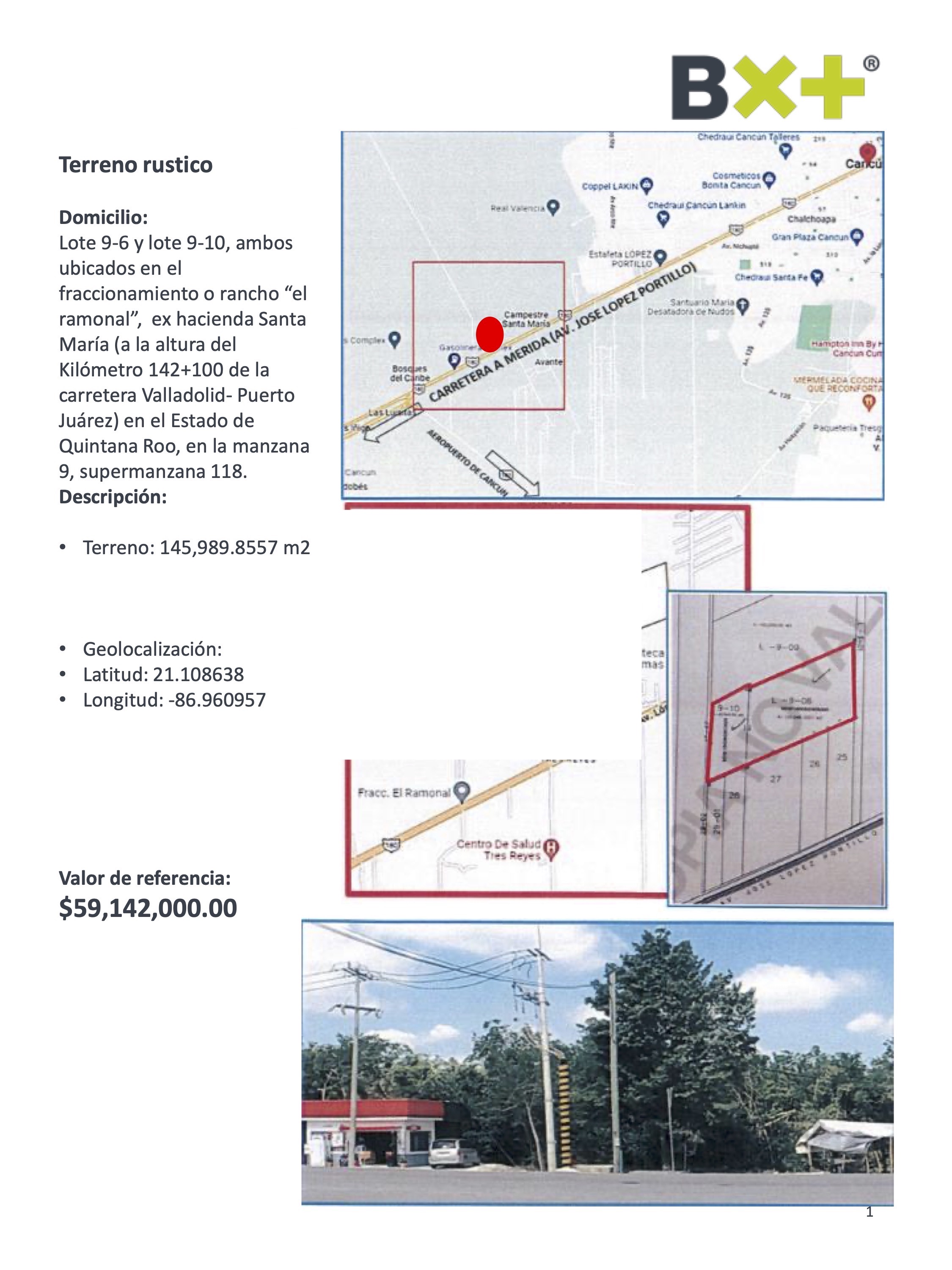 TERRENO RUSTICO, TERRENO: 145,989.8557 M2, LOTE 9-6 Y LOTE 9-10, AMBOS UBICADOS EN EL FRACCIONAMIENTO O RANCHO “EL RAMONAL”, EX HACIENDA SANTA MARÍA (A LA ALTURA DEL KILÓMETRO 142+100 DE LA CARRETERA VALLADOLID- PUERTO JUÁREZ) EN EL ESTADO DE QUINTANA ROO, EN LA MANZANA 9, SUPERMANZANA 118.