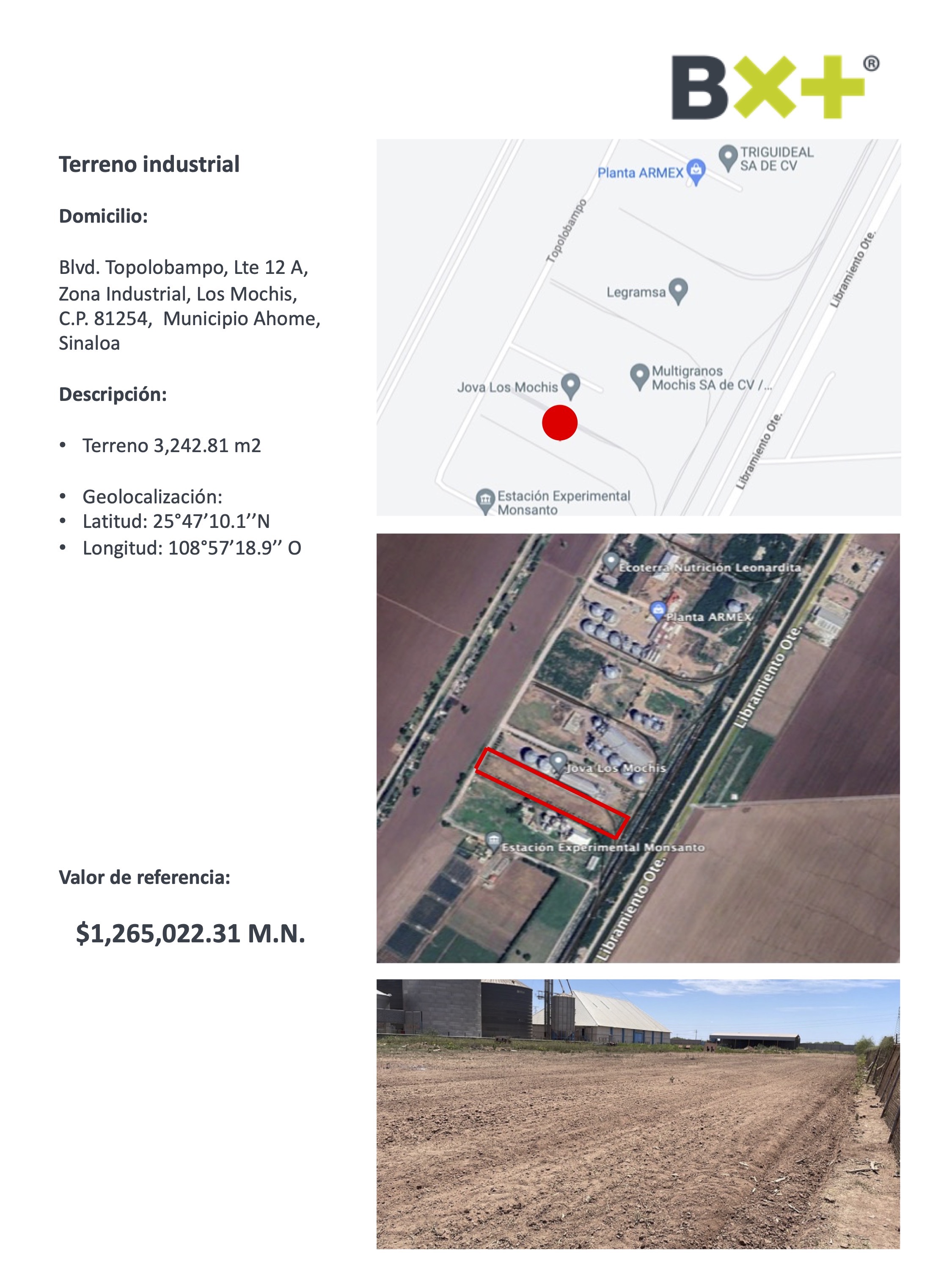 TERRENO INDUSTRIAL, TERRENO 3,242.81 M2, BLVD. TOPOLOBAMPO, LTE 12 A, ZONA INDUSTRIAL, LOS MOCHIS, C.P. 81254, MUNICIPIO AHOME, SINALOA