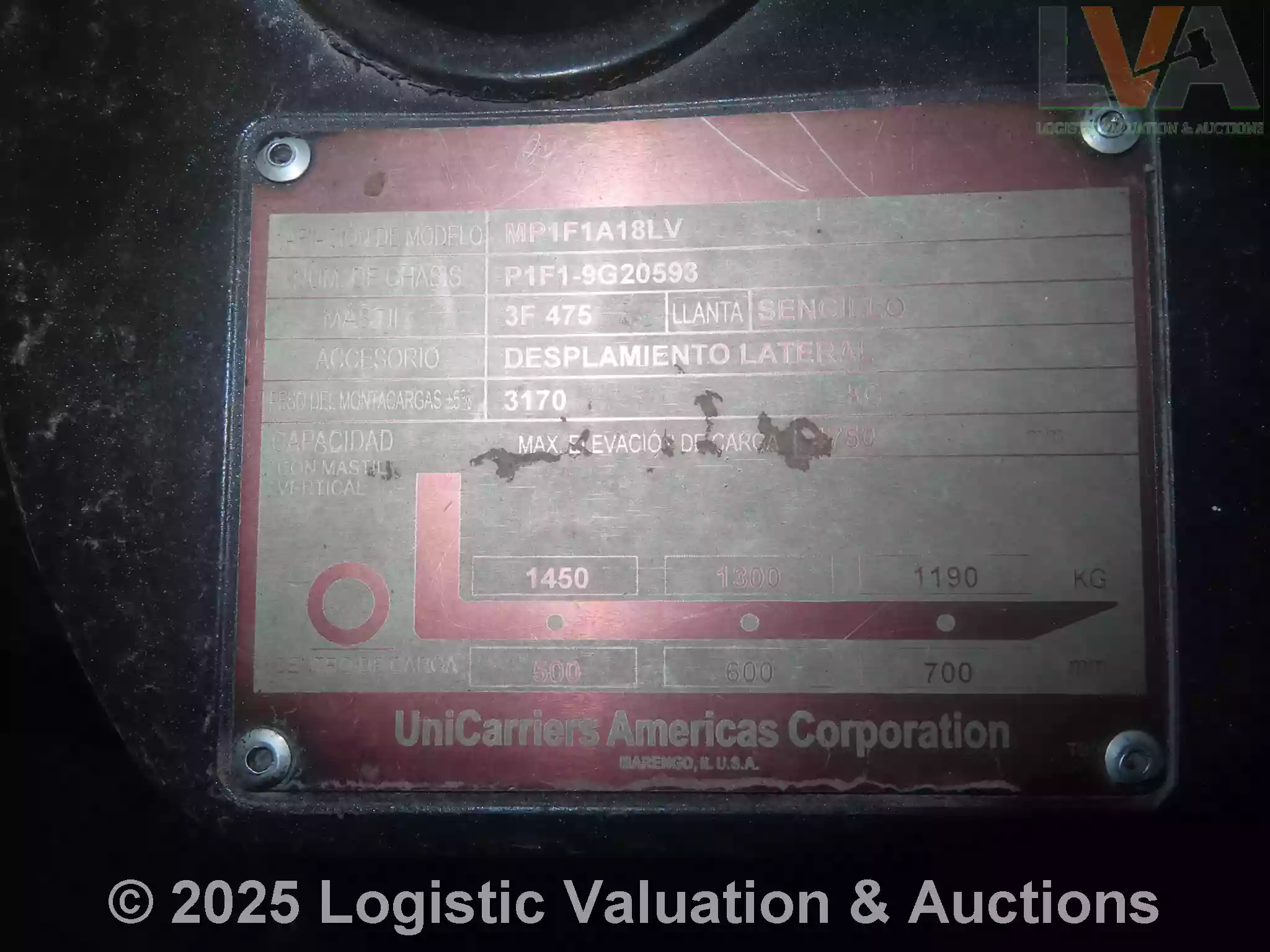 MONTACARGAS, MARCA: UNICARRIERS, MODELO: MP1F1A18LV, AÑO: , SERIE: P1F1-9G20593, CONDICIONES: REGULARES CONDICIONES GENERALES, OPERANDO., CAP DE CARGA: 1190 KG