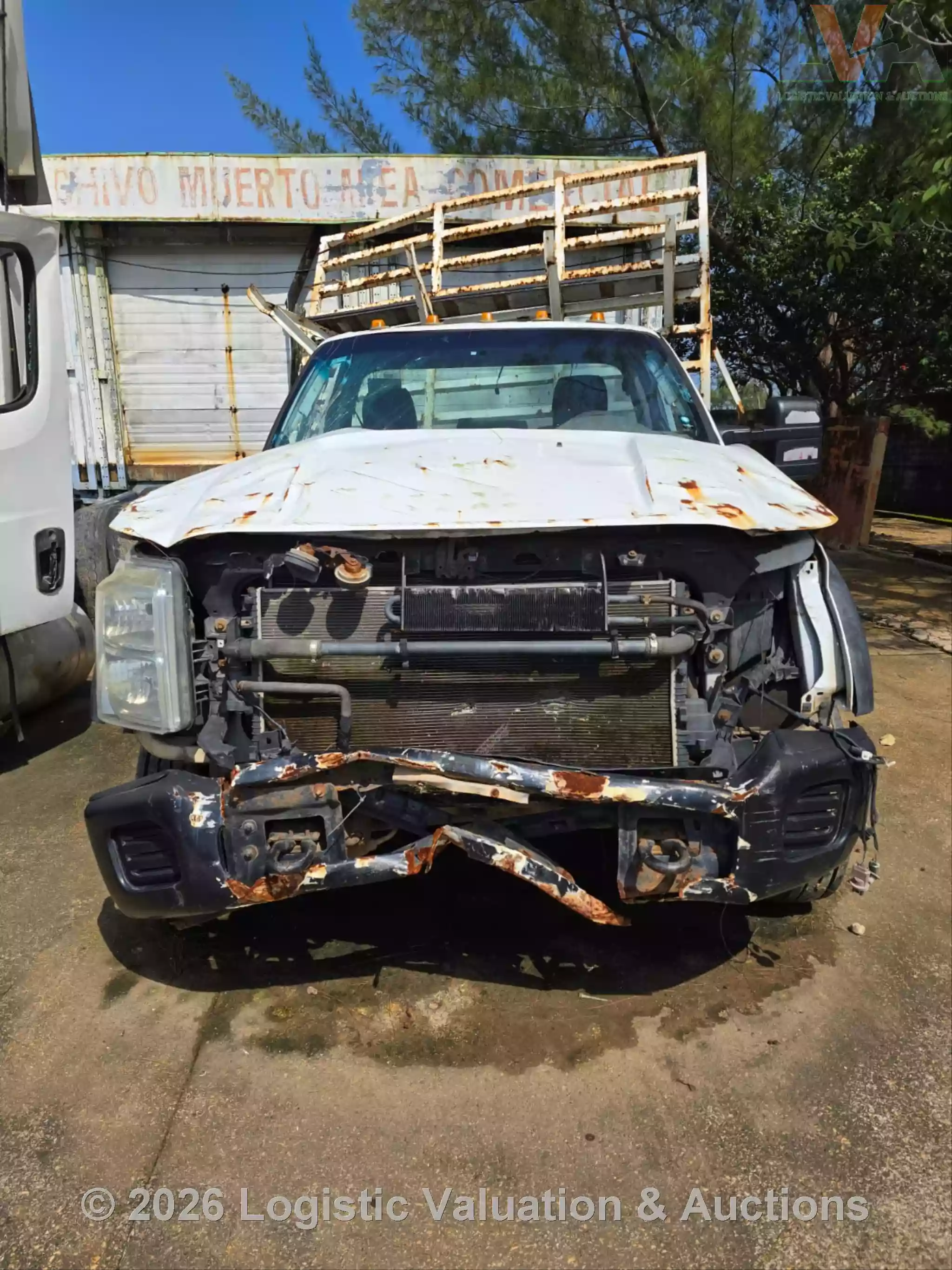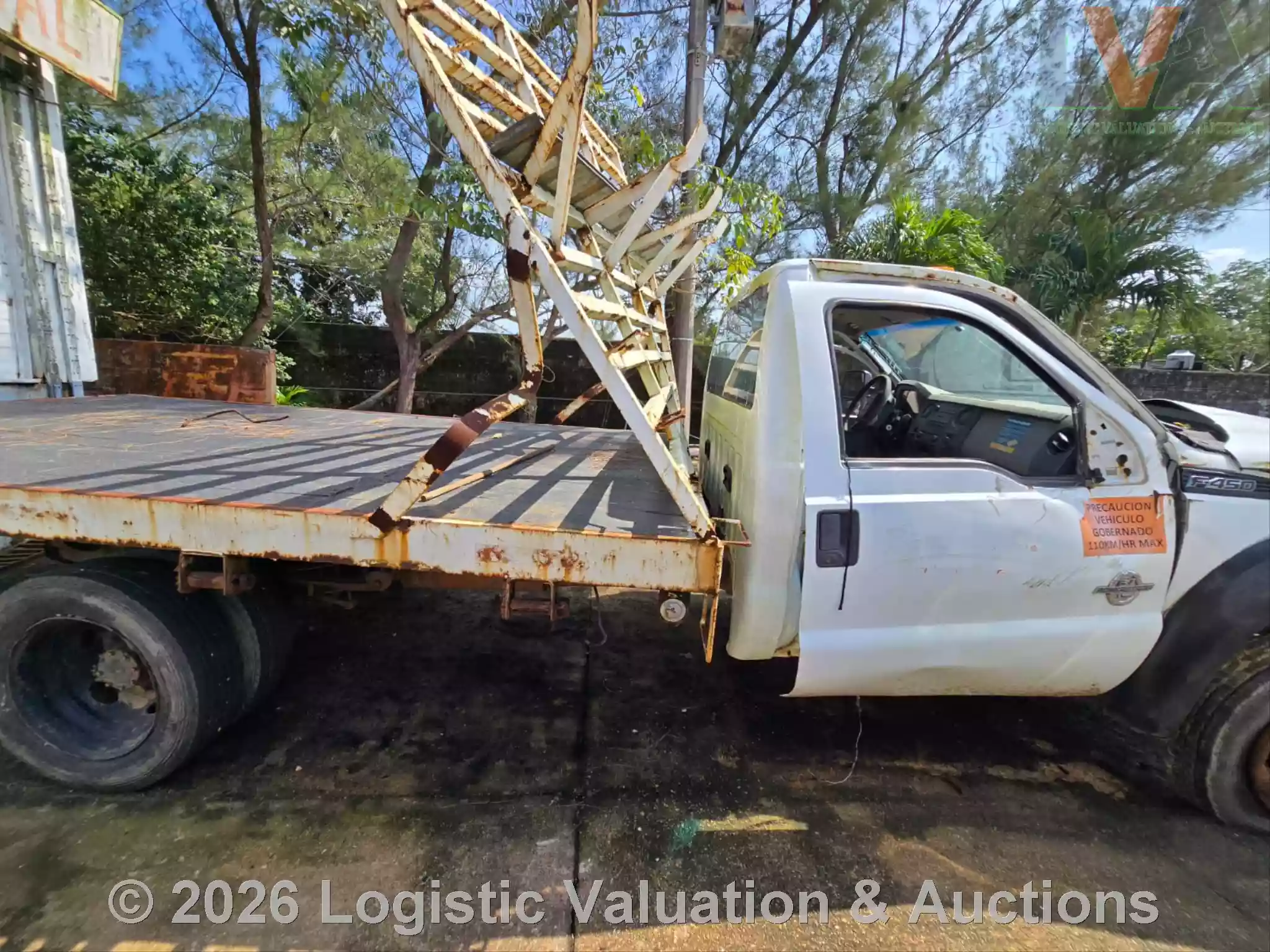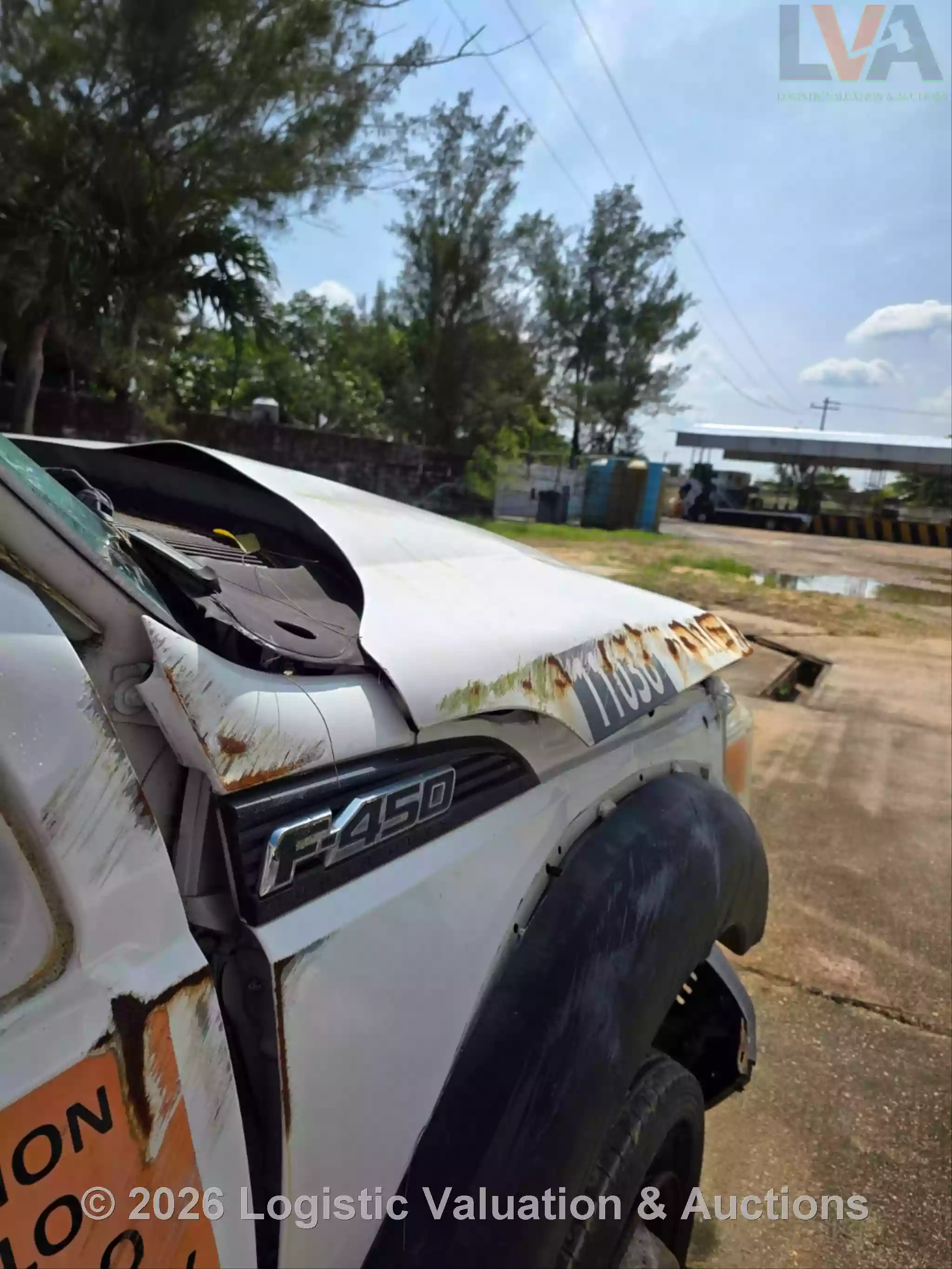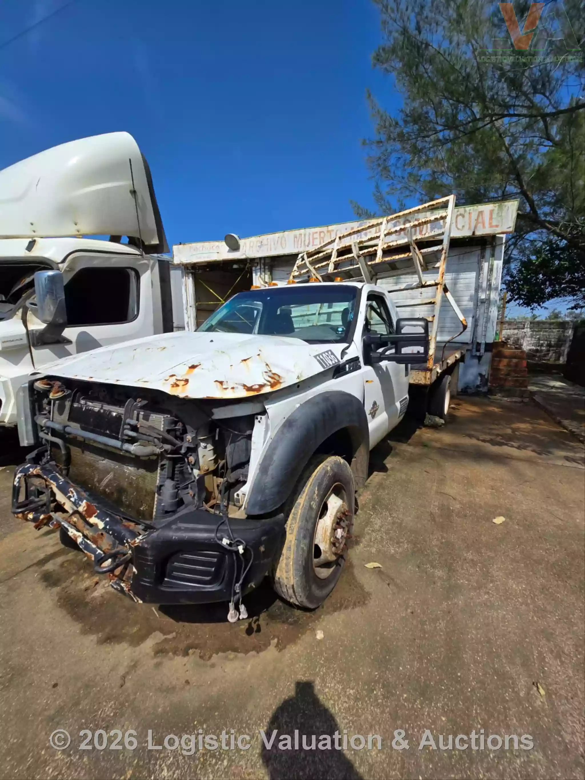 CAMIONETA, MARCA: FORD, MODELO: F-450 PLATAFORMA, AÑO: 2016, SERIE: 1FDGF4GT2GED19476, CONDICIONES: UNIDAD SINIESTRADA, PÉRDIDA TOTAL, RETIRO SÓLO EN GRUA, PLATAFORMA ESTÁ EN MAL ESTADO, OXIDADA, GOLPEADA, CON BARANDAL DOBLADA. MOTOR: NO ENCIENDE. CAJA DE VELOCIDADES: MAL ESTADO. CLIMA NO FUNCIONA. SUSPENSIÓN: DAÑOS POR VOLCADURA, COFRE ABIERTO, PARABRISAS QUEBRADO, CABINA Y TABLERO SUCIOS, SIN RETROVISOR DERECHO, SIN FASCIA RADIADOR EXPUESTO., ECO: TVR11036