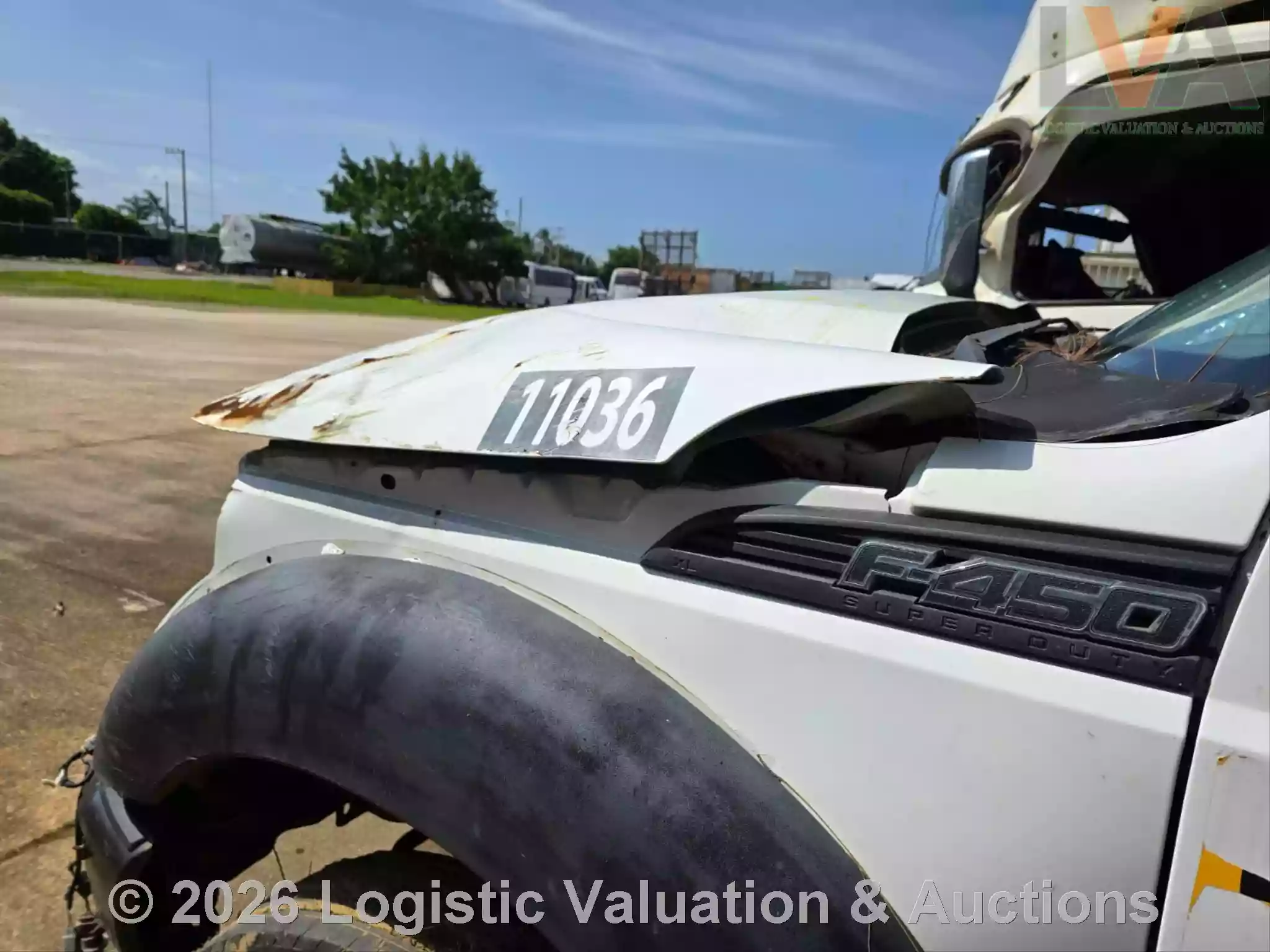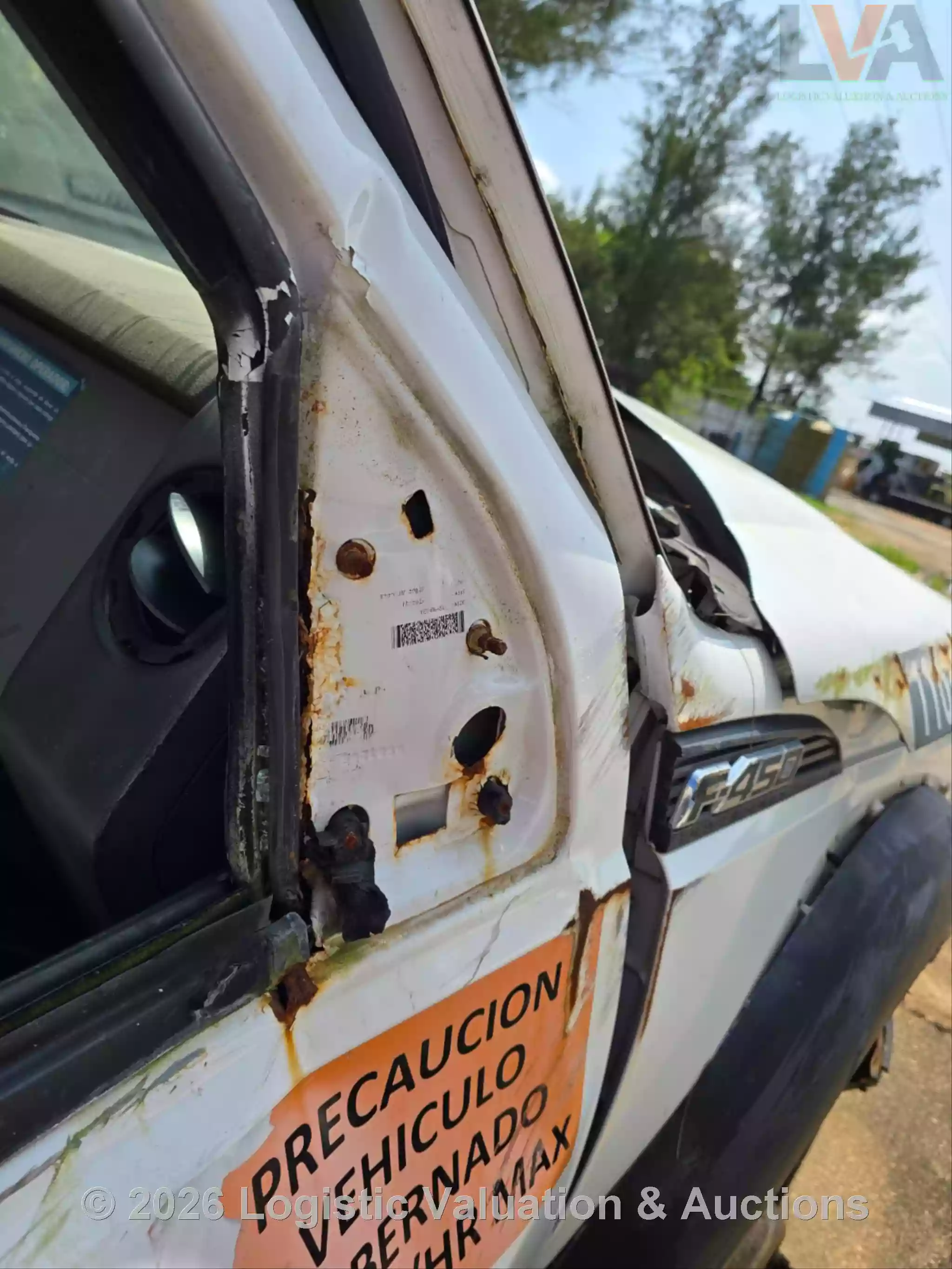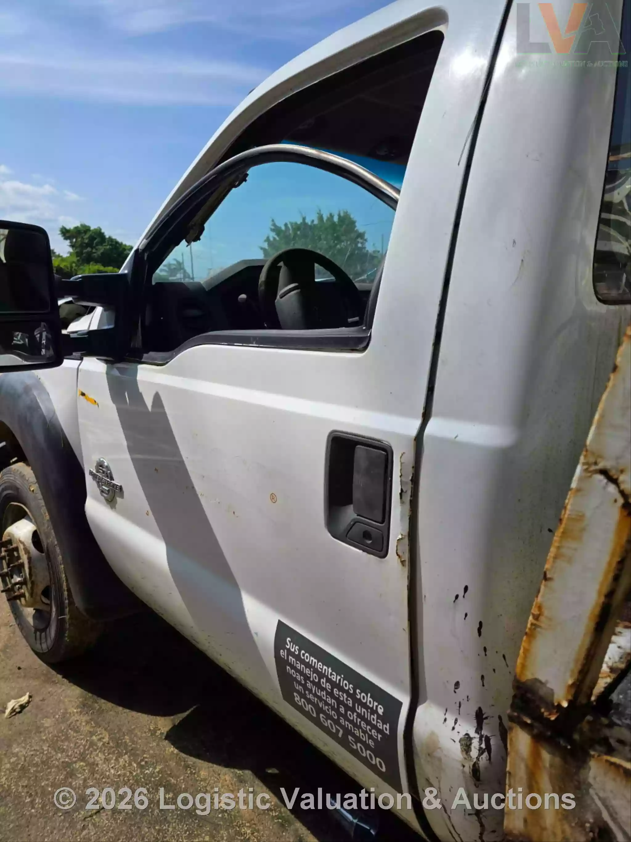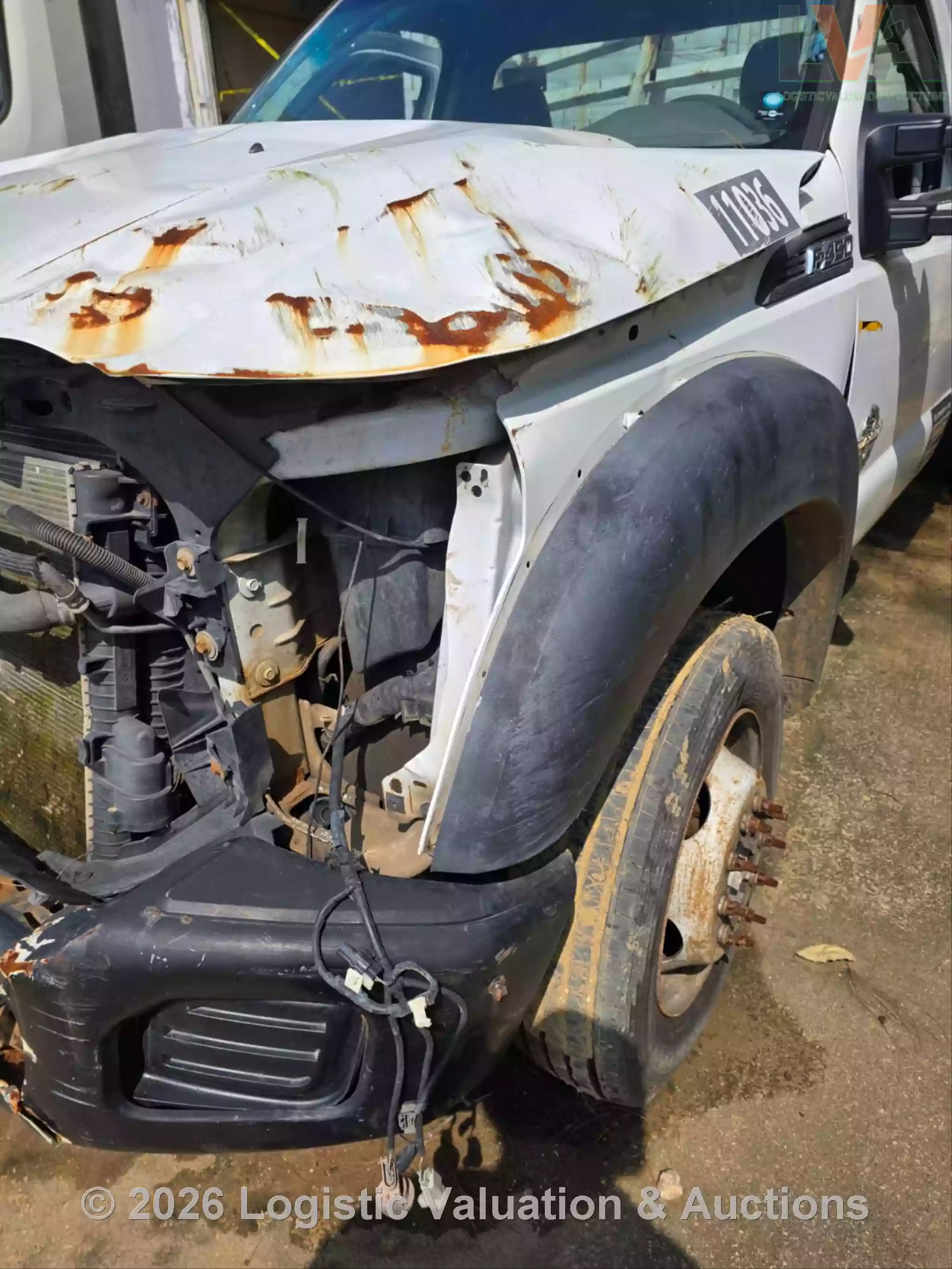 CAMIONETA, MARCA: FORD, MODELO: F-450 PLATAFORMA, AÑO: 2016, SERIE: 1FDGF4GT2GED19476, CONDICIONES: UNIDAD SINIESTRADA, PÉRDIDA TOTAL, RETIRO SÓLO EN GRUA, PLATAFORMA ESTÁ EN MAL ESTADO, OXIDADA, GOLPEADA, CON BARANDAL DOBLADA. MOTOR: NO ENCIENDE. CAJA DE VELOCIDADES: MAL ESTADO. CLIMA NO FUNCIONA. SUSPENSIÓN: DAÑOS POR VOLCADURA, COFRE ABIERTO, PARABRISAS QUEBRADO, CABINA Y TABLERO SUCIOS, SIN RETROVISOR DERECHO, SIN FASCIA RADIADOR EXPUESTO., ECO: TVR11036