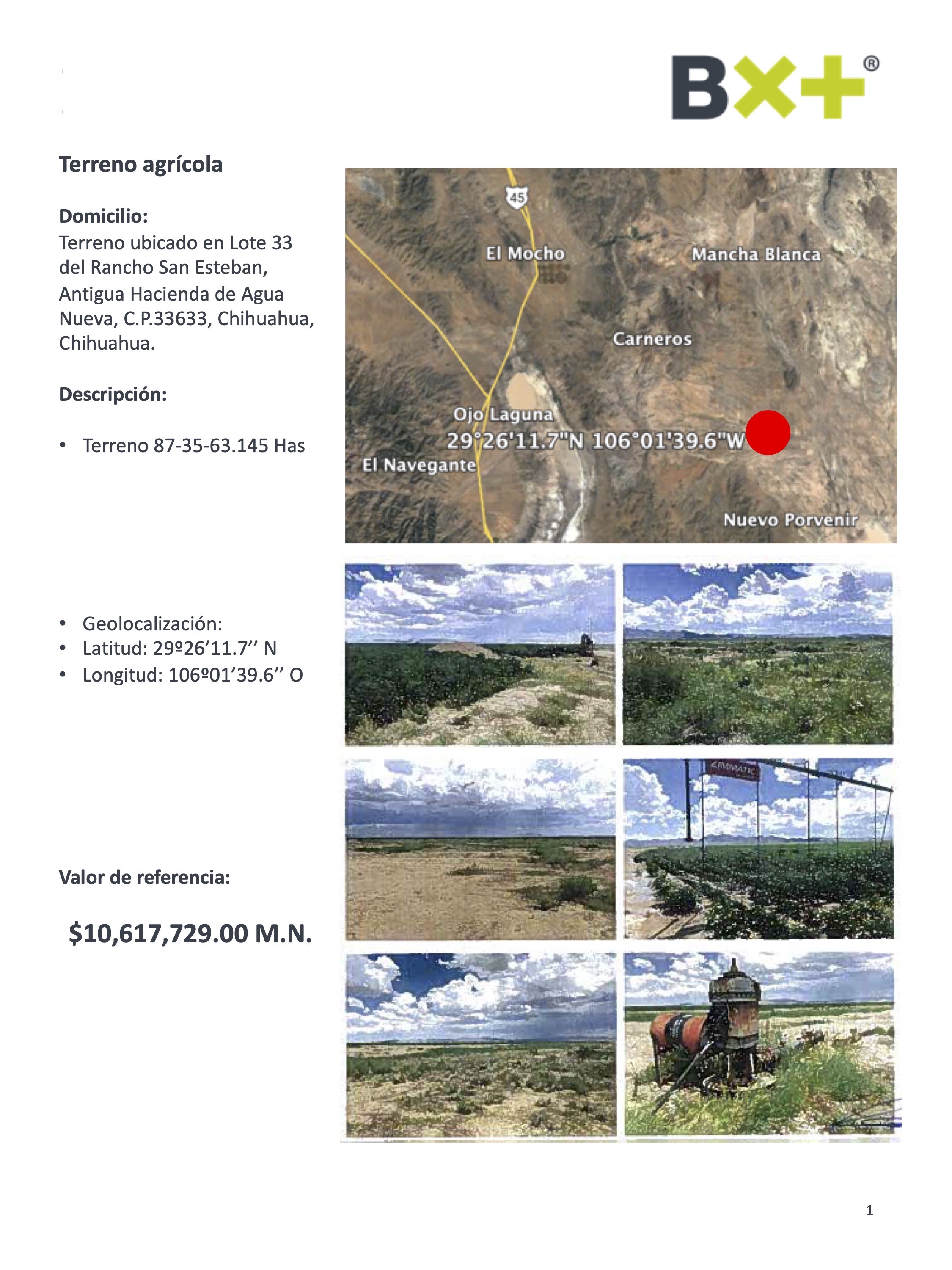 TERRENO AGRÍCOLA, TERRENO 87-35-63.145 HAS, TERRENO UBICADO EN LOTE 33 DEL RANCHO SAN ESTEBAN, ANTIGUA HACIENDA DE AGUA NUEVA, C.P.33633, CHIHUAHUA, CHIHUAHUA.