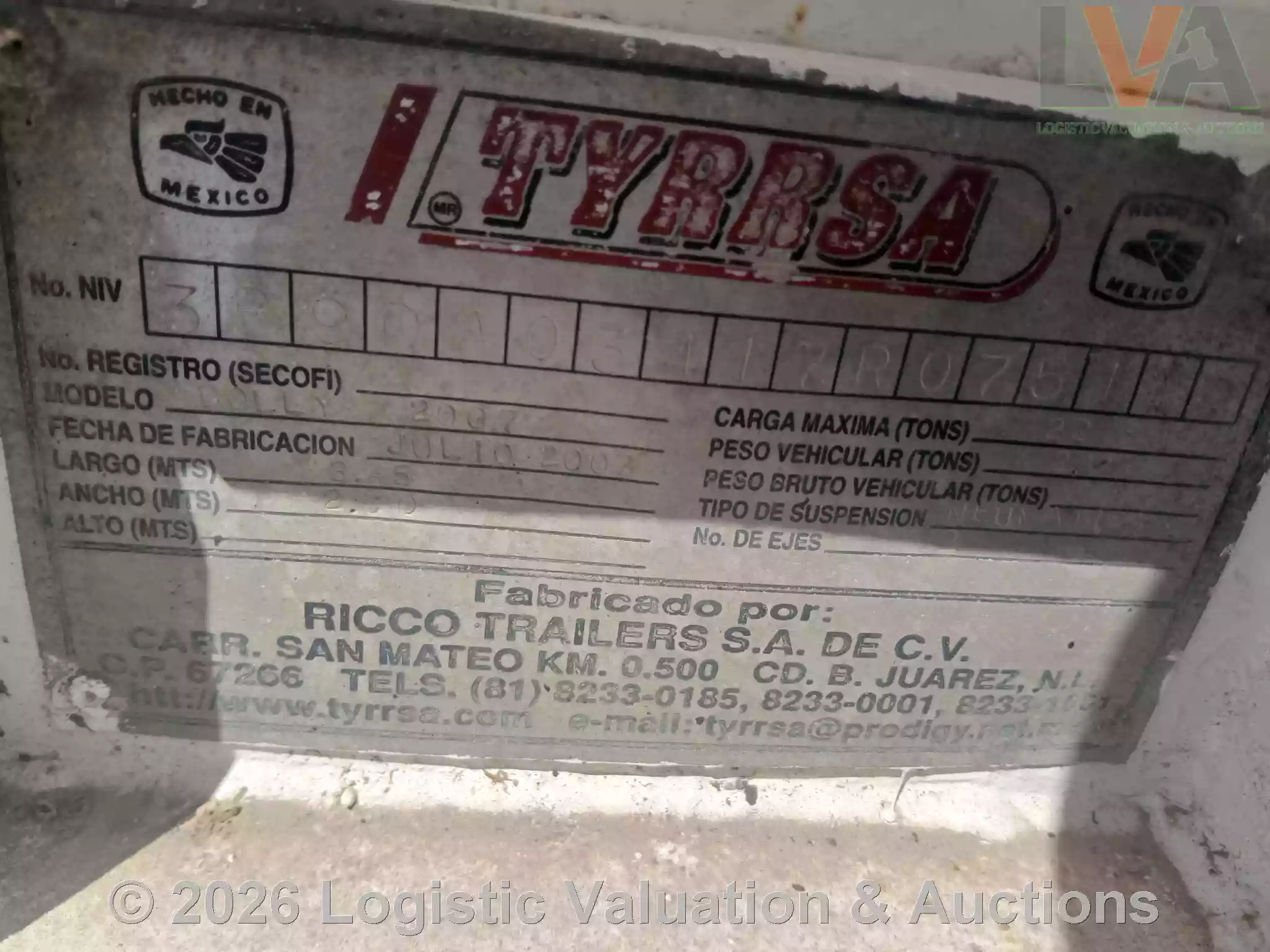 DOLLY, MARCA: TYRRSA, MODELO: , AÑO: 2007, SERIE: 3R9DA03417R075129, CONDICIONES: REGULARES CONDICIONES FISICAS EN GENERAL, ECO: DO-5346