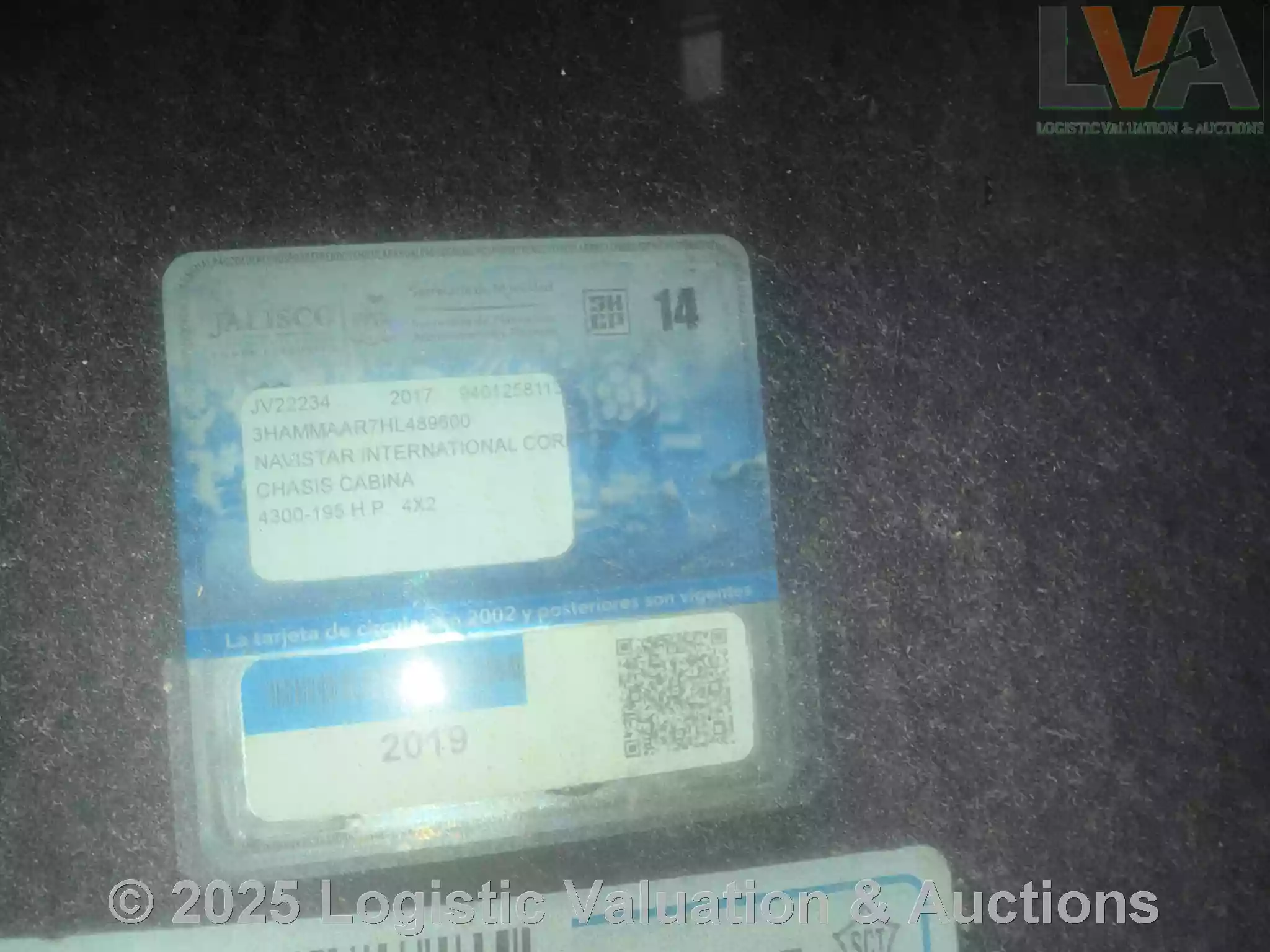 CAMIÓN, MARCA: INTERNATIONAL, MODELO: 4300, AÑO: 2017, SERIE: 3HAMMAAR7HL489600, CONDICIONES: CARROCERIA EN REGULARES CONDICIONES, INTERIORES ENE MAL ESTADO, SIN MOTOR, SIN TRANSMISION., ECO: RD 3087