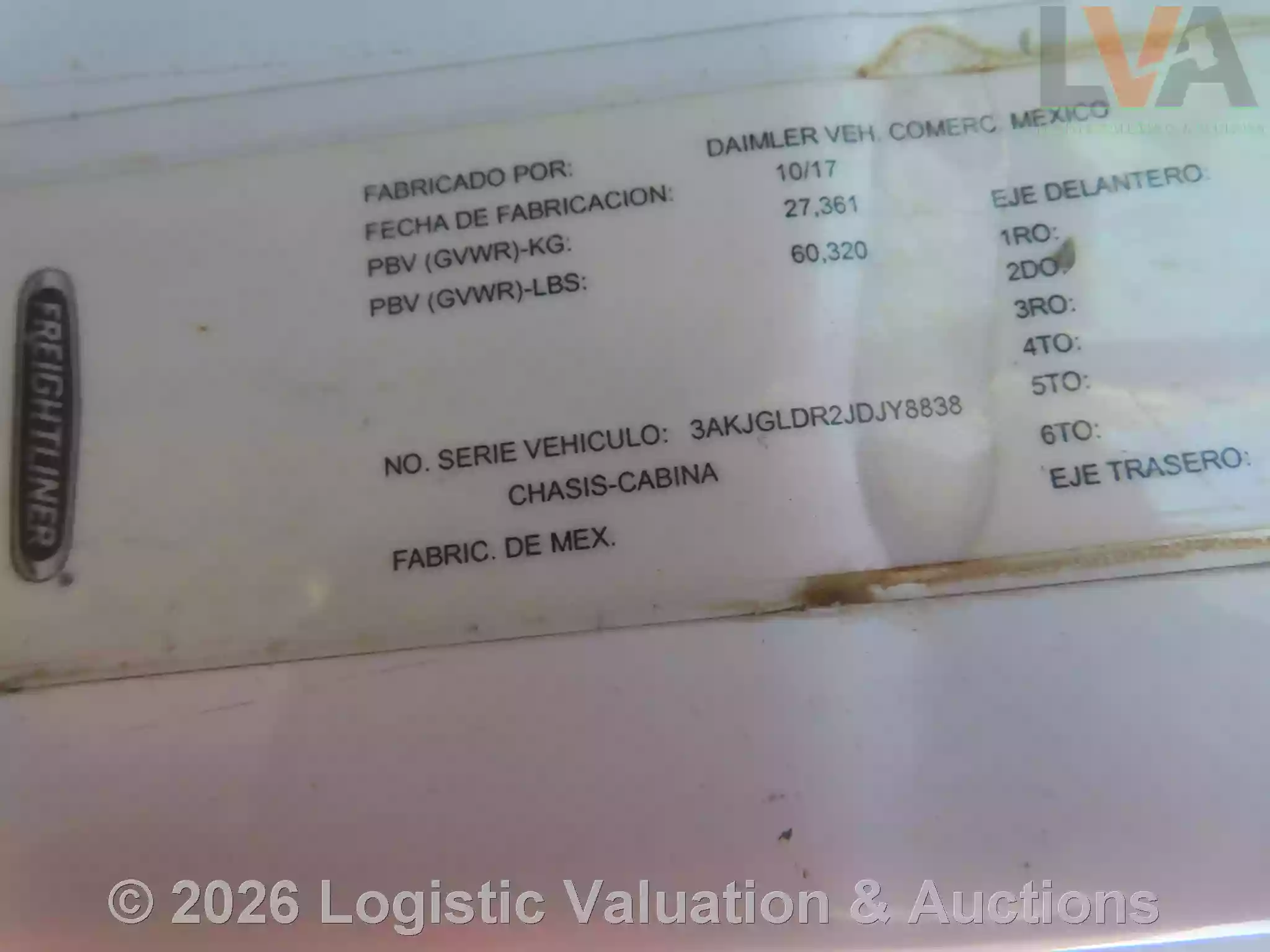 LAS IMÁGENES MOSTRADAS EN EL CATÁLOGO DE LOTES SON DE CARÁCTER ILUSTRATIVO. ES UN REQUISITO INDISPENSABLE PARA EL COMPRADOR REALIZAR INSPECCIÓN FÍSICA, YA QUE NO EXISTE NINGÚN TIPO DE GARANTÍA.