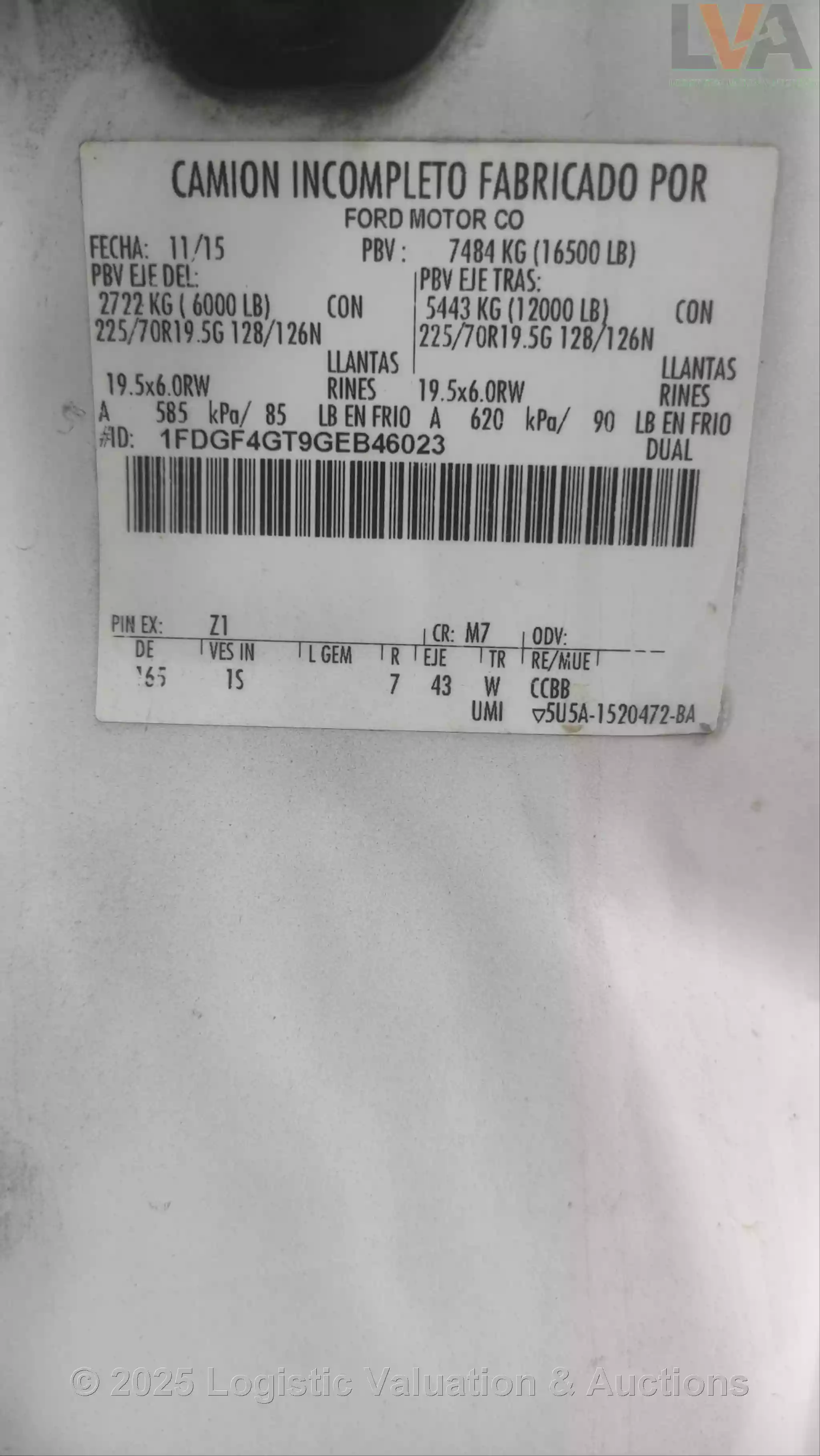 LAS IMÁGENES MOSTRADAS EN EL CATÁLOGO DE LOTES SON DE CARÁCTER ILUSTRATIVO. ES UN REQUISITO INDISPENSABLE PARA EL COMPRADOR REALIZAR INSPECCIÓN FÍSICA, YA QUE NO EXISTE NINGÚN TIPO DE GARANTÍA.