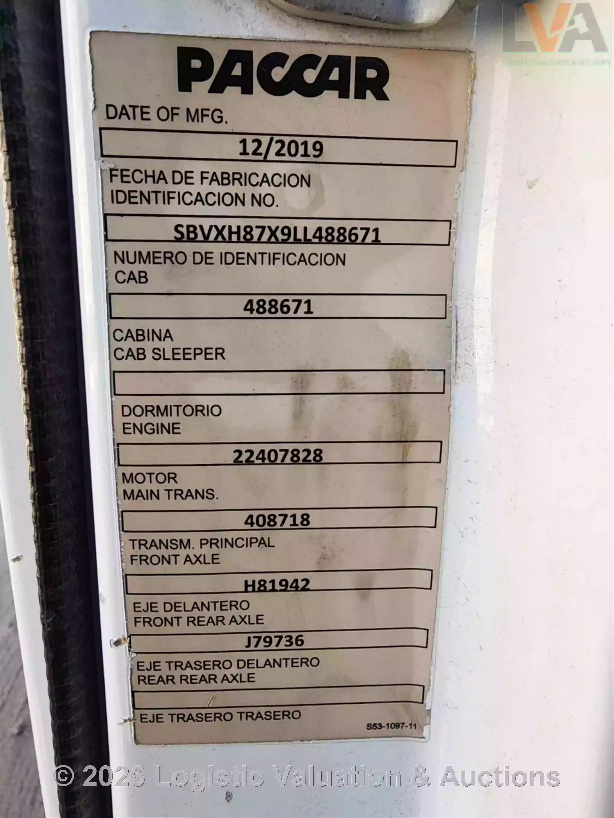 CAMIÓN, MARCA: KENWORTH, MODELO: KW45, AÑO: 2020, SERIE: SBVXH87X9LL488671, CONDICIONES: CARROCERIA EN REGULARES CONDICIONES, INTERIORES EN REGULAR ESTADO, OPERABLE., KM: 79778