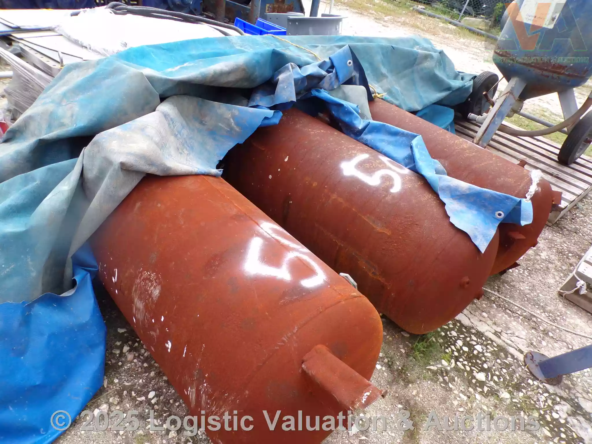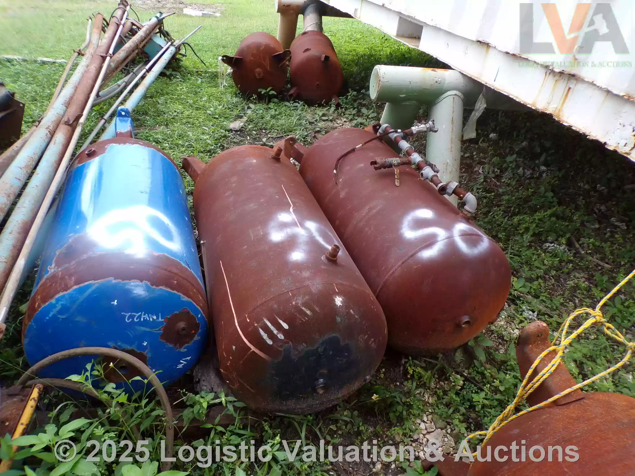 LOTE COMPUESTO POR 11 TANQUE DE AIRE VERTICAL, 3 OLLA DE SAND BLAST.