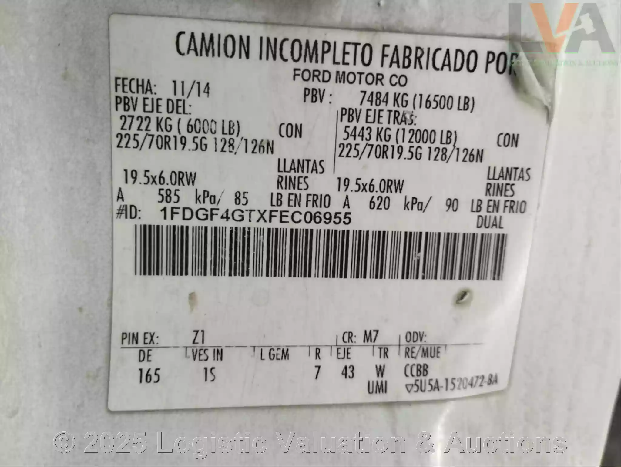 CAMIONETA, MARCA: FORD, MODELO: F-450 MULTITEMPERATURA, AÑO: 2015, SERIE: 1FDGF4GTXFEC06955, CARROCERIA EN MAL ESTADO, INTERIORES EN MAL ESTADO, MOTOR INCOMPLETO, FLECHA DESMONTADA EN CABINA, NO OPERABLE, KM: 224380, ECO: TVR10436