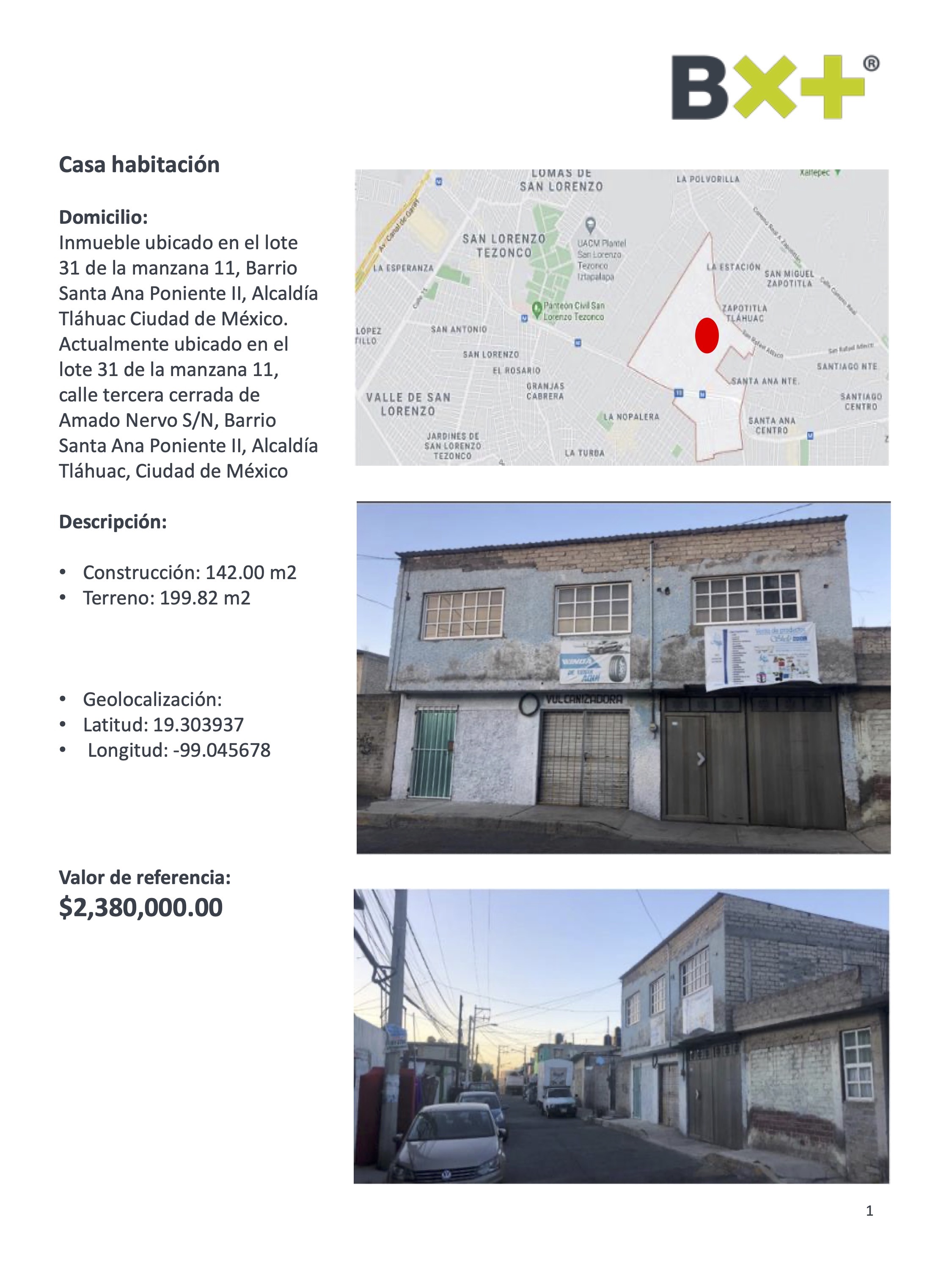 CASA HABITACIÓN, CONSTRUCCIÓN: 142.00 M2, TERRENO: 199.82 M2, INMUEBLE UBICADO EN EL LOTE 31 DE LA MANZANA 11, BARRIO SANTA ANA PONIENTE II, ALCALDÍA TLÁHUAC CIUDAD DE MÉXICO. ACTUALMENTE UBICADO EN EL LOTE 31 DE LA MANZANA 11, CALLE TERCERA CERRADA DE AMADO NERVO S/N, BARRIO SANTA ANA PONIENTE IL, ALCALDÍA TLÁHUAC, CIUDAD DE MÉXICO