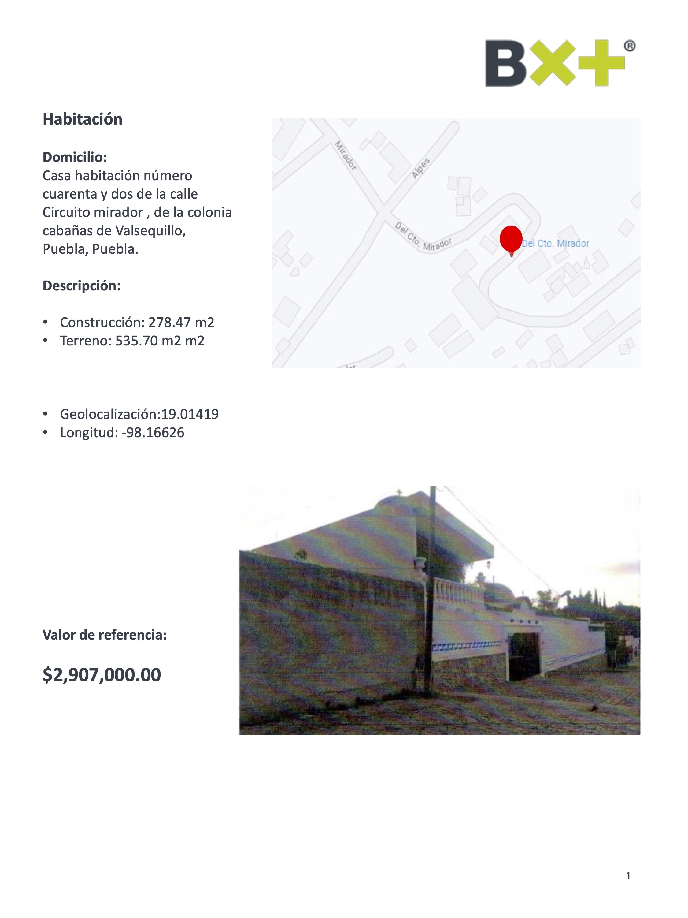 CASA HABITACIÓN, CONSTRUCCIÓN: 278.47 M2, TERRENO: 535.70 M2 M2, CASA HABITACIÓN NÚMERO CUARENTA Y DOS DE LA CALLE CIRCUITO MIRADOR, DE LA COLONIA CABAÑAS DE VALSEQUILLO, PUEBLA, PUEBLA.