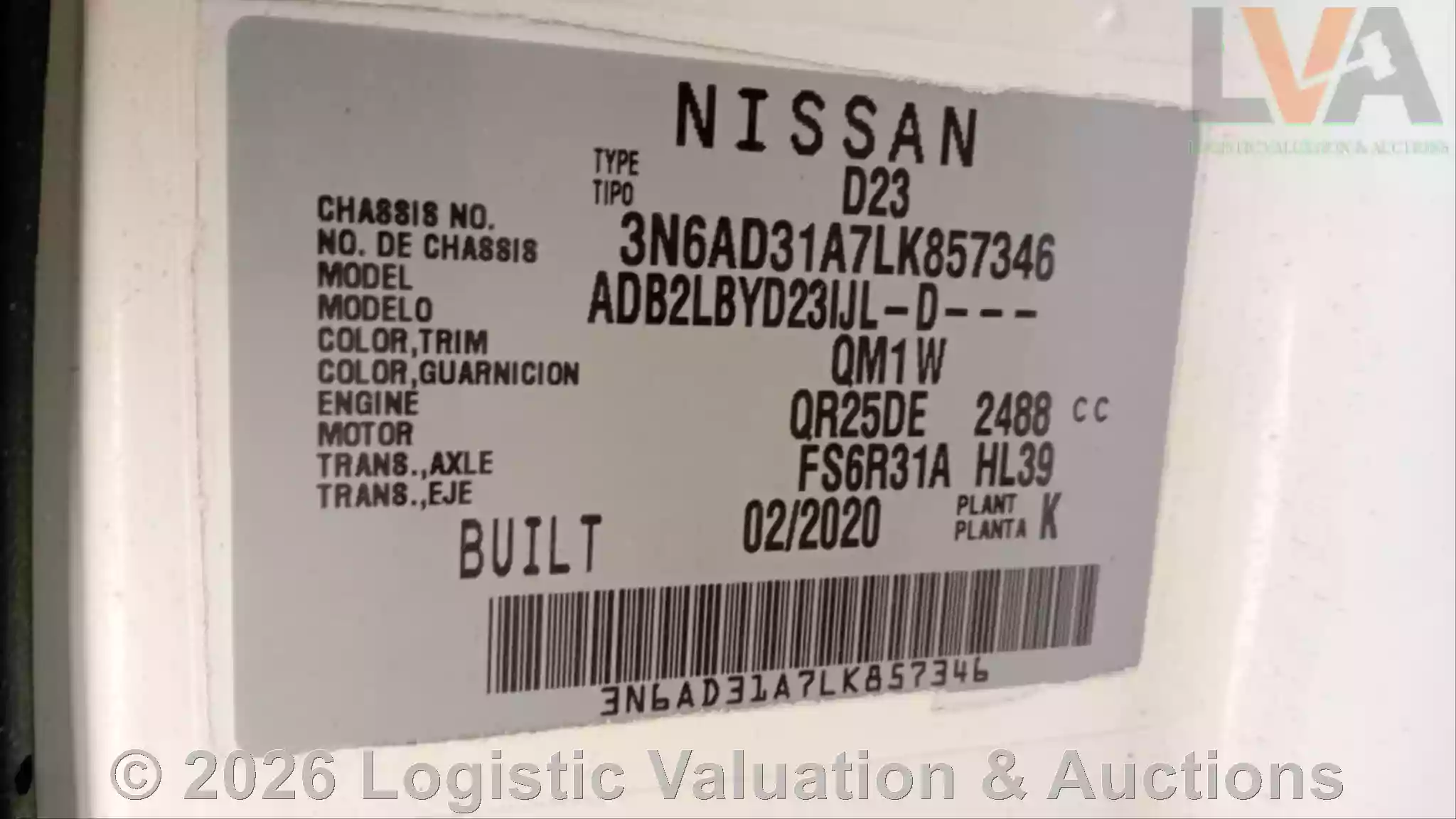 CAMIONETA, MARCA: NISSAN , MODELO: NP 300 CABINA REGULAR, AÑO: 2020, SERIE: 3N6AD31A7LK857346, CONDICIONES: LA UNIDAD PRESENTA MÚLTIPLES DETALLES EN LA CARROCERÍA, INCLUYENDO DESGASTE EN LA PINTURA Y PRESENCIA DE ÓXIDO EN LA BATEA, EL COFRE Y EL TOLDO. SE OBSERVA UN GOLPE EN LA PARTE DELANTERA DEL COFRE, LO QUE PODRÍA AFECTAR LA ALINEACIÓN DEL FRENTE. LA DEFENSA DEL COSTADO DERECHO ESTÁ ROTA, COMPROMETIENDO LA ESTÉTICA Y PROTECCIÓN DEL VEHÍCULO. LA SUSPENSIÓN MUESTRA UN DETERIORO SIGNIFICATIVO Y REQUIERE REEMPLAZO PARA GARANTIZAR LA ESTABILIDAD Y SEGURIDAD EN LA CONDUCCIÓN. LAS LLANTAS SE ENCUENTRAN EN MAL ESTADO, CON DESGASTE QUE REDUCE LA ADHERENCIA Y AUMENTA EL RIESGO EN CARRETERA. ADEMÁS, EL SISTEMA DE FRENOS NECESITA CAMBIO INMEDIATO, YA QUE SU CONDICIÓN ACTUAL REPRESENTA UN RIESGO PARA LA OPERACIÓN SEGURA DEL VEHÍCULO., ECO: T13561