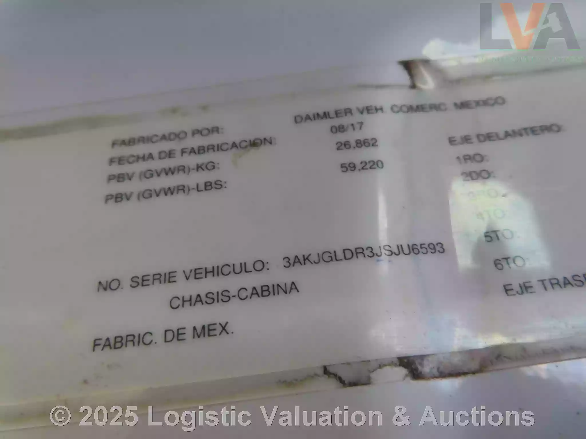 LAS IMÁGENES MOSTRADAS EN EL CATÁLOGO DE LOTES SON DE CARÁCTER ILUSTRATIVO. ES UN REQUISITO INDISPENSABLE PARA EL COMPRADOR REALIZAR INSPECCIÓN FÍSICA, YA QUE NO EXISTE NINGÚN TIPO DE GARANTÍA.