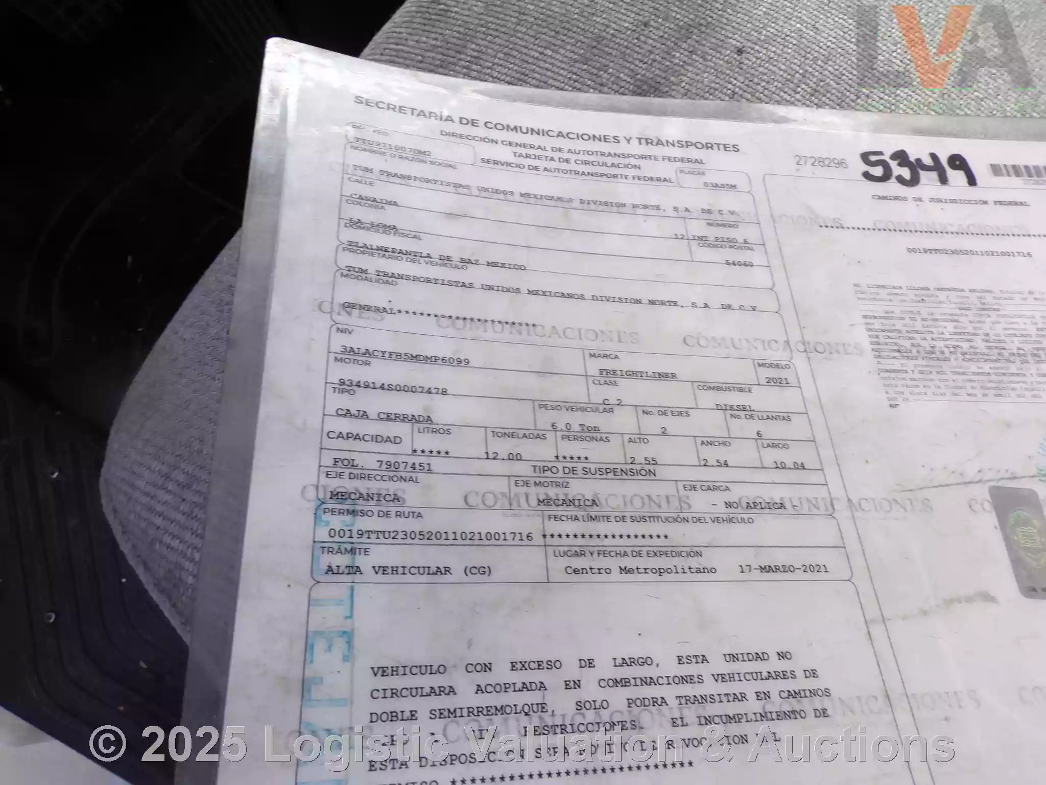 LAS IMÁGENES MOSTRADAS EN EL CATÁLOGO DE LOTES SON DE CARÁCTER ILUSTRATIVO. ES UN REQUISITO INDISPENSABLE PARA EL COMPRADOR REALIZAR INSPECCIÓN FÍSICA, YA QUE NO EXISTE NINGÚN TIPO DE GARANTÍA.