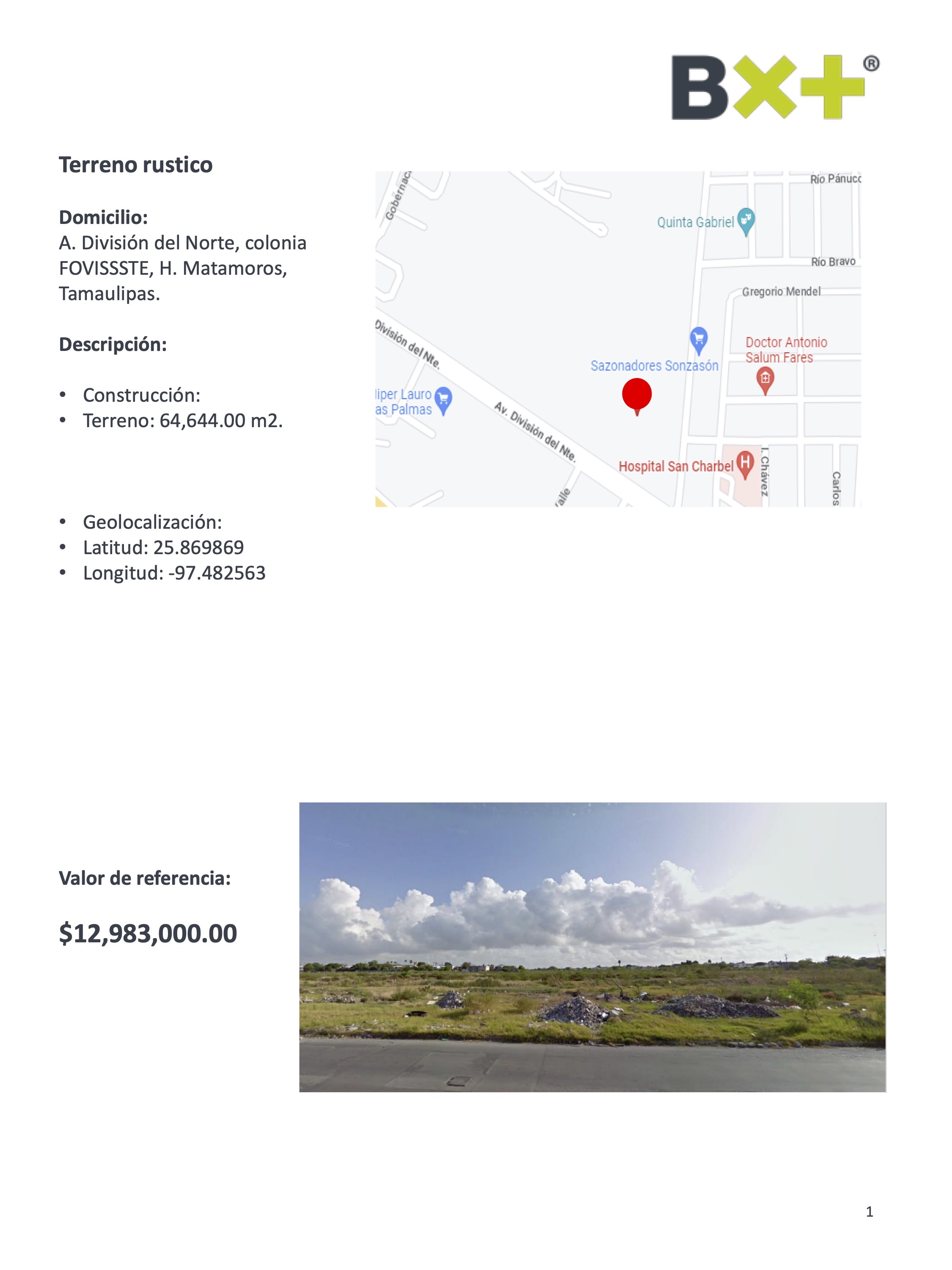 TERRENO RUSTICO, TERRENO: 64,644.00 M2., A. DIVISIÓN DEL NORTE, COLONIA FOVISSSTE, H. MATAMOROS, TAMAULIPAS.