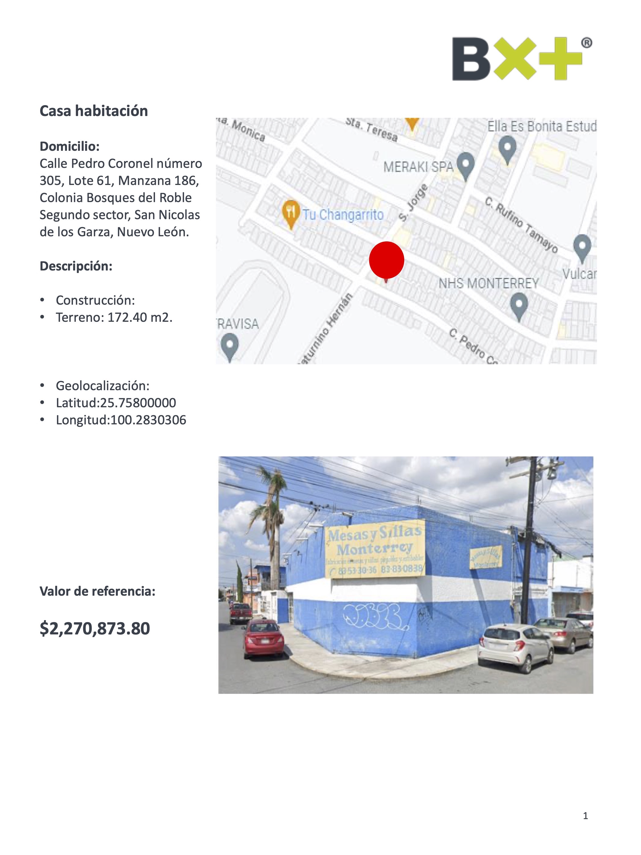 CASA HABITACIÓN, TERRENO: 172.40 M2., CALLE PEDRO CORONEL NÚMERO 305, LOTE 61, MANZANA 186, COLONIA BOSQUES DEL ROBLE SEGUNDO SECTOR, SAN NICOLAS DE LOS GARZA, NUEVO LEÓN.