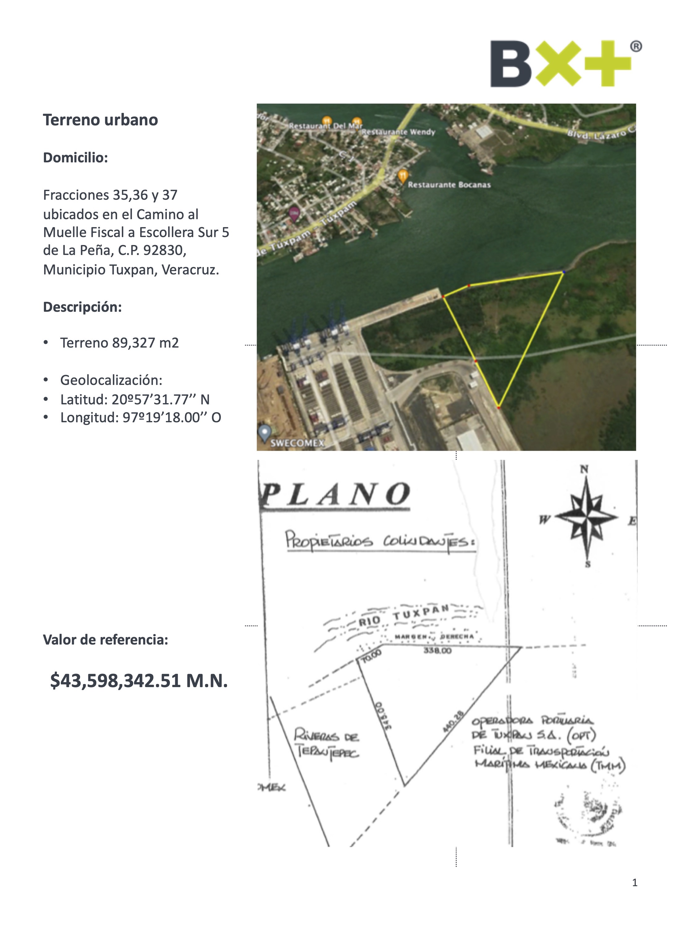 TERRENO URBANO, TERRENO 89,327 M2, FRACCIONES 35,36 Y 37 UBICADOS EN EL CAMINO AL MUELLE FISCAL A ESCOLLERA SUR 5 DE LA PEÑA, C.P. 92830, MUNICIPIO TUXPAN, VERACRUZ.
