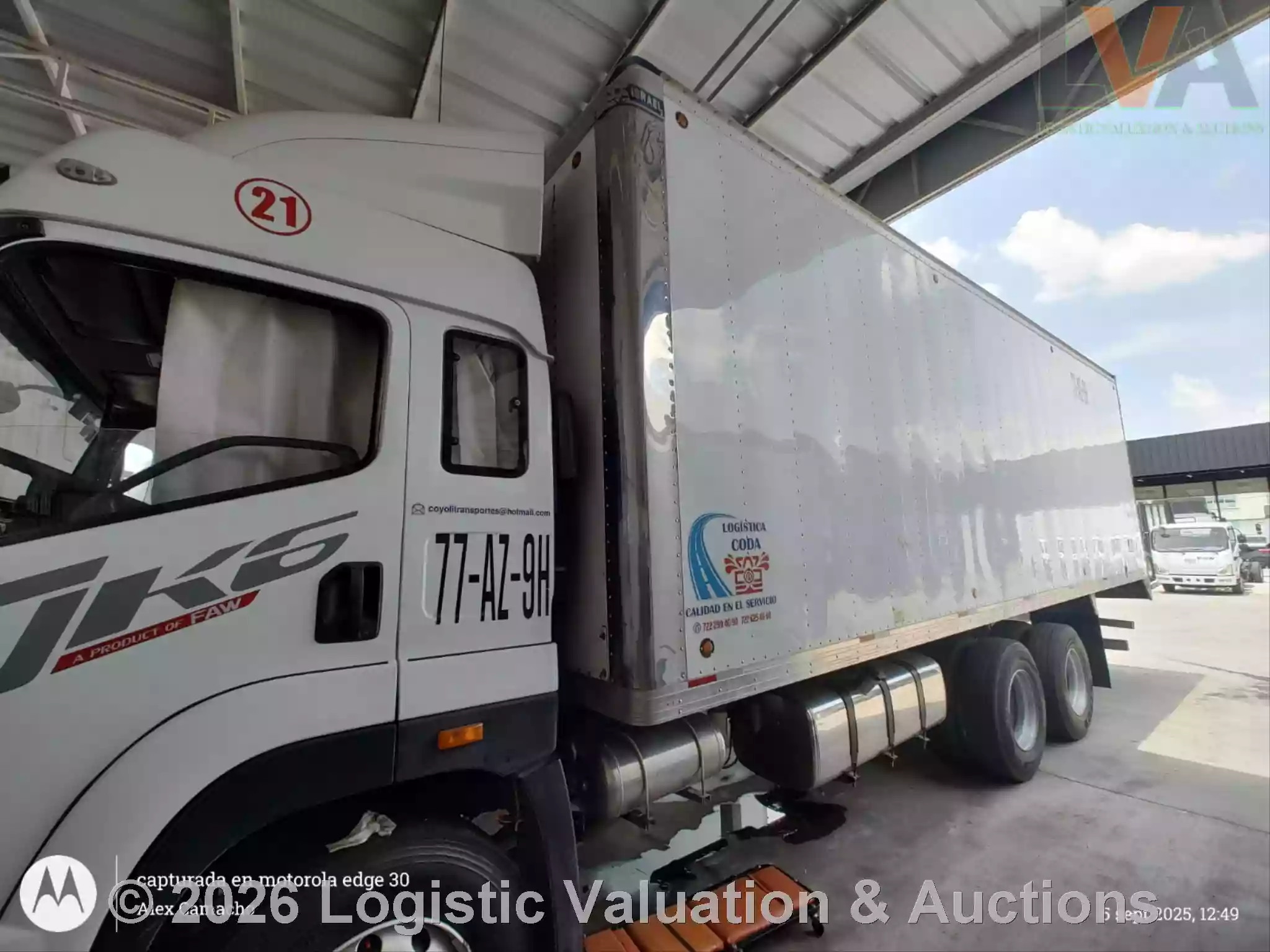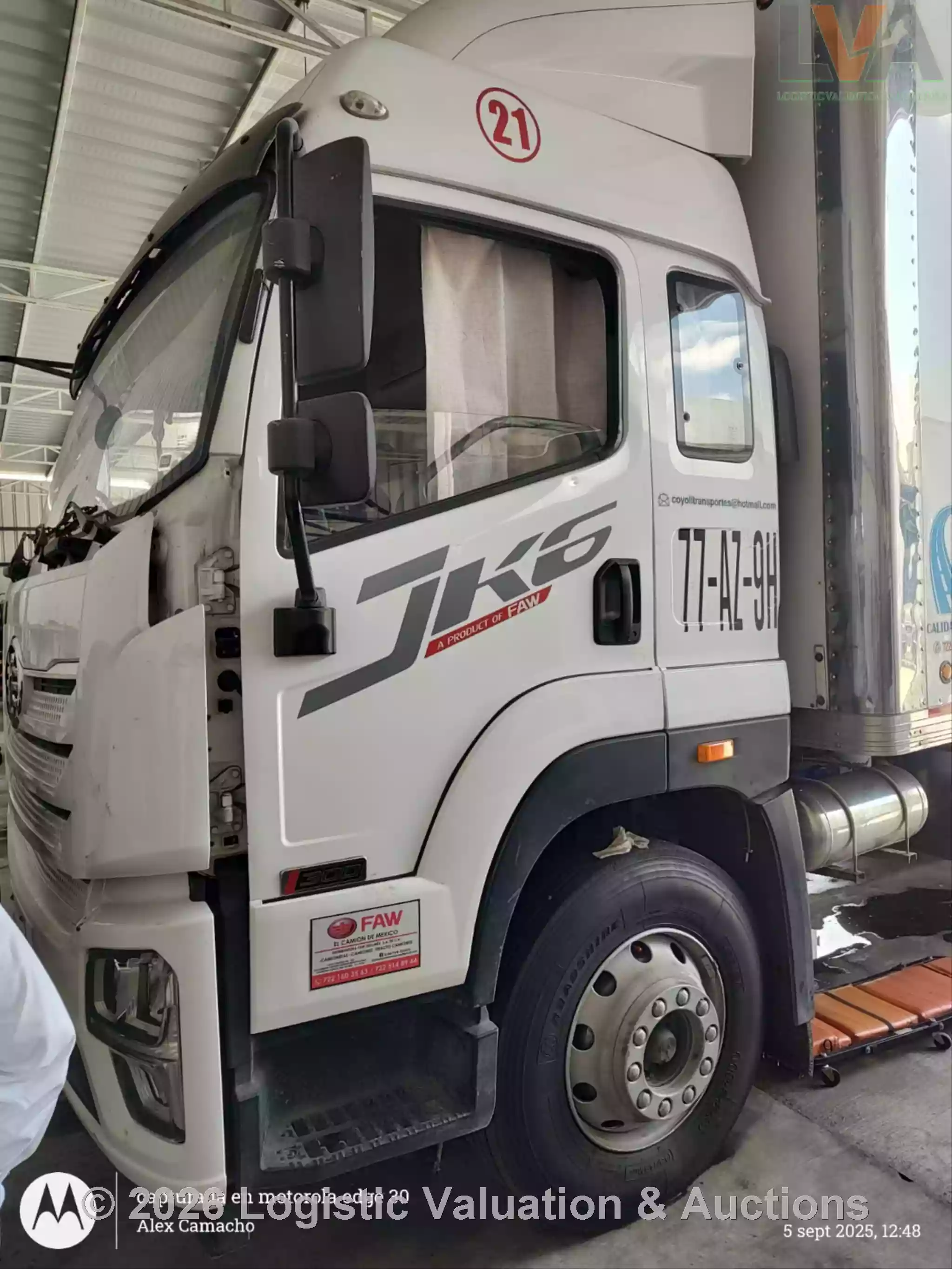 CAMIÓN CON CAJA SECA, MARCA: FAW, MODELO: 3020D, AÑO: 2024, SERIE: 3EP3JD4C3PE000512, CONDICIONES: CARROCERIA EN REGULARES CONDICIONES, INTERIORES EN REGULAR ESTADO, PRESENTA FALLA EN MOTOR, PISTON DAÑADO., KM: